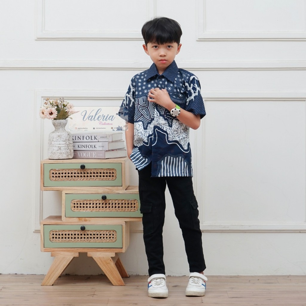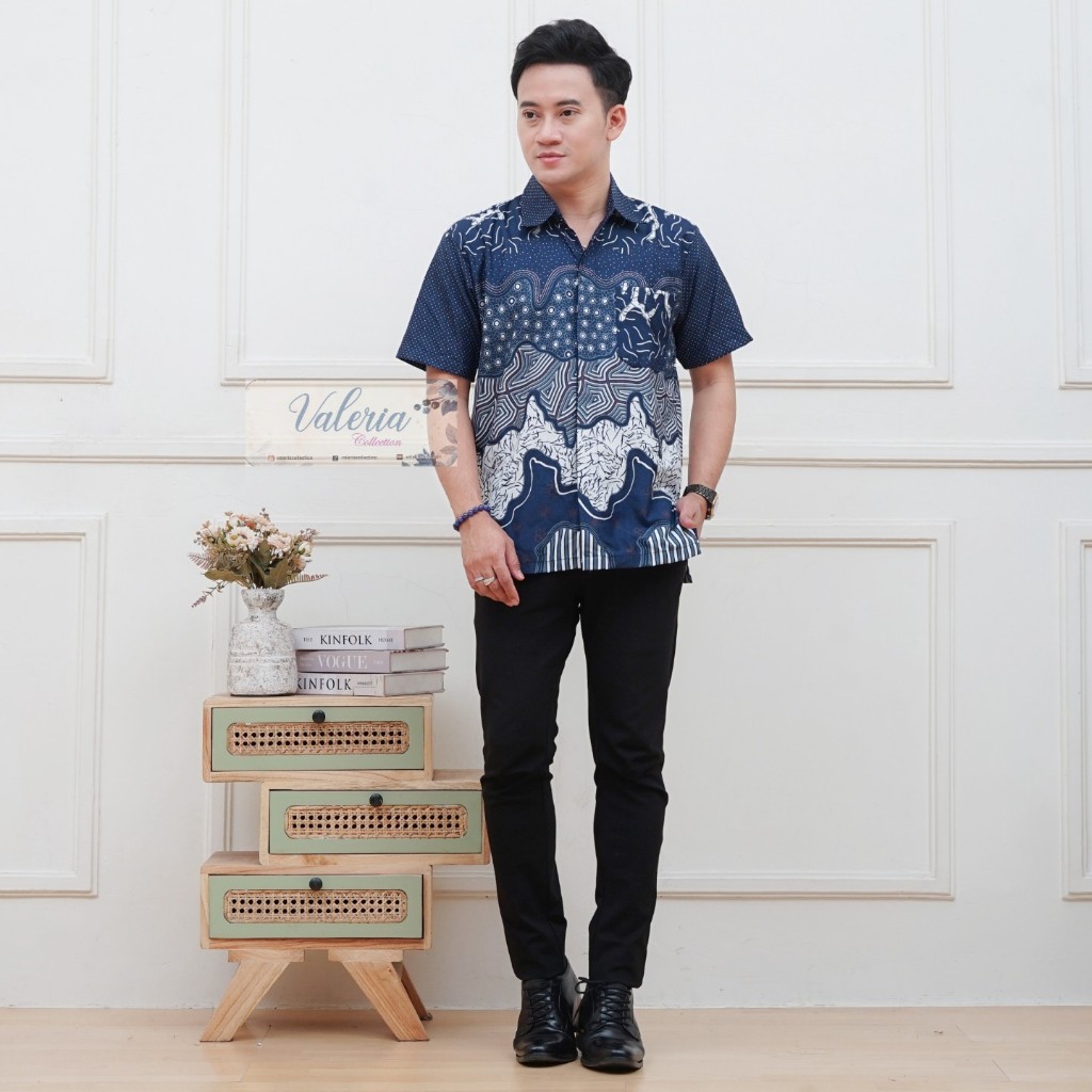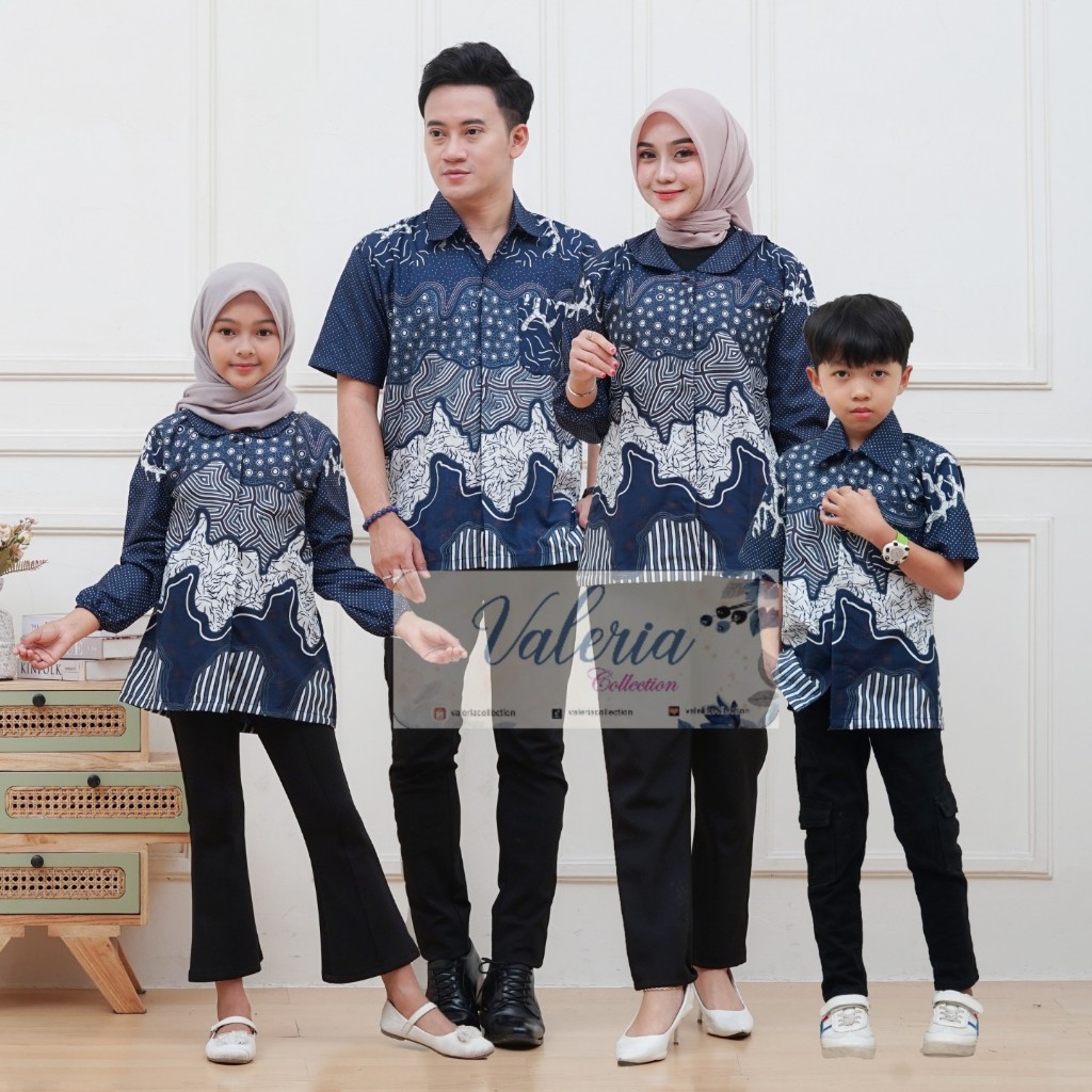 Baju Batik Couple Pasangan Sekeluarga Ayah Ibu Anak Atasan Pria Lengan Pendek Blouse Batik Modern