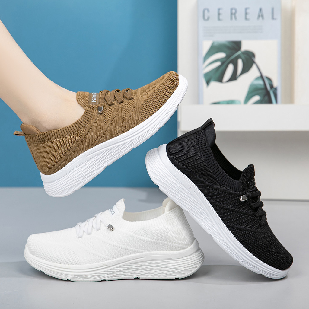 Sepatu Sneakers Wanita Rajut OM910-B Casual Sporty Korea Fashion Import KinBos