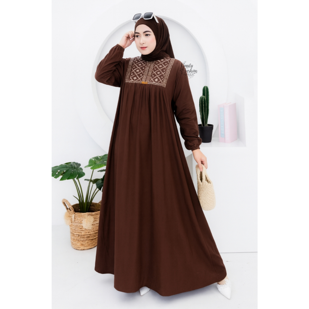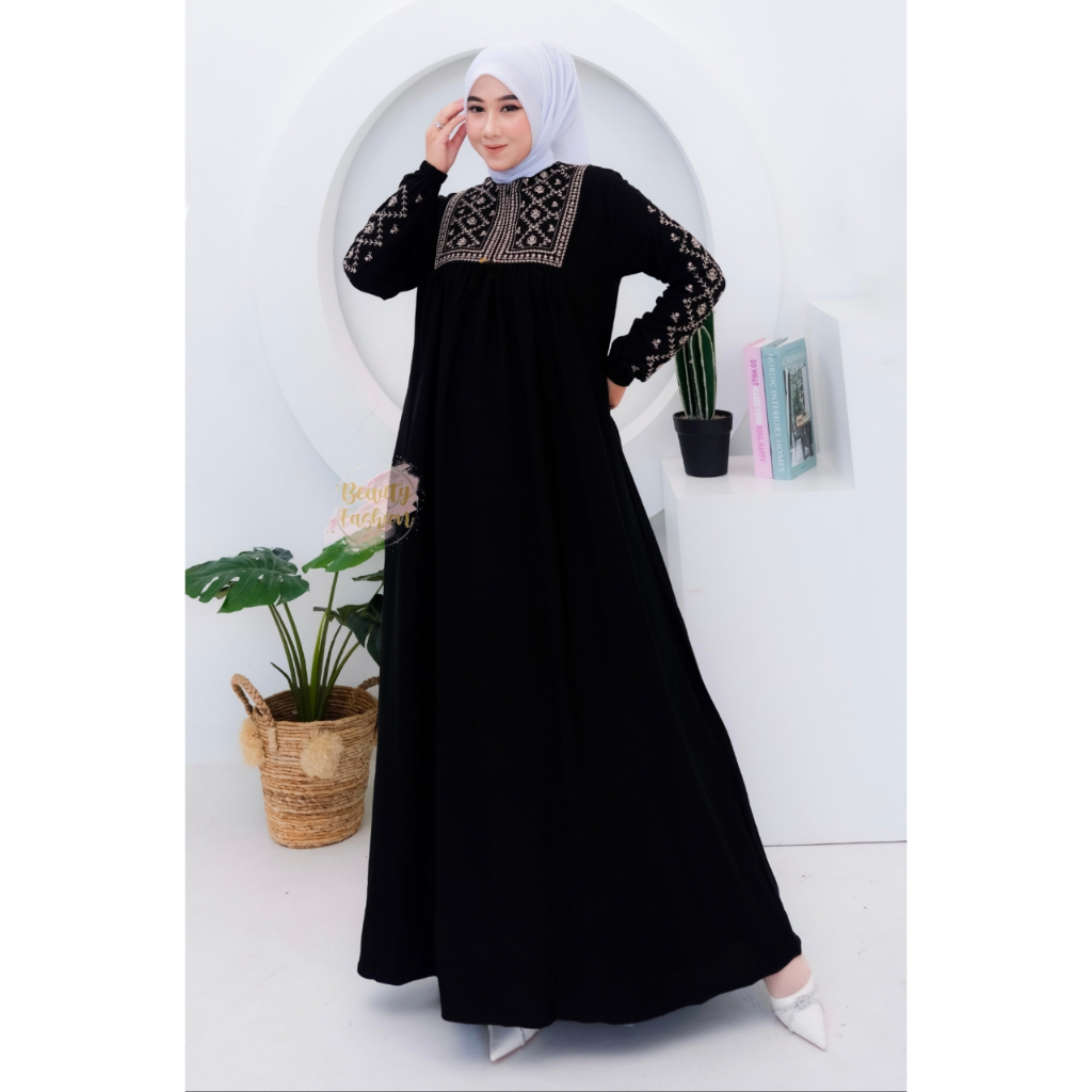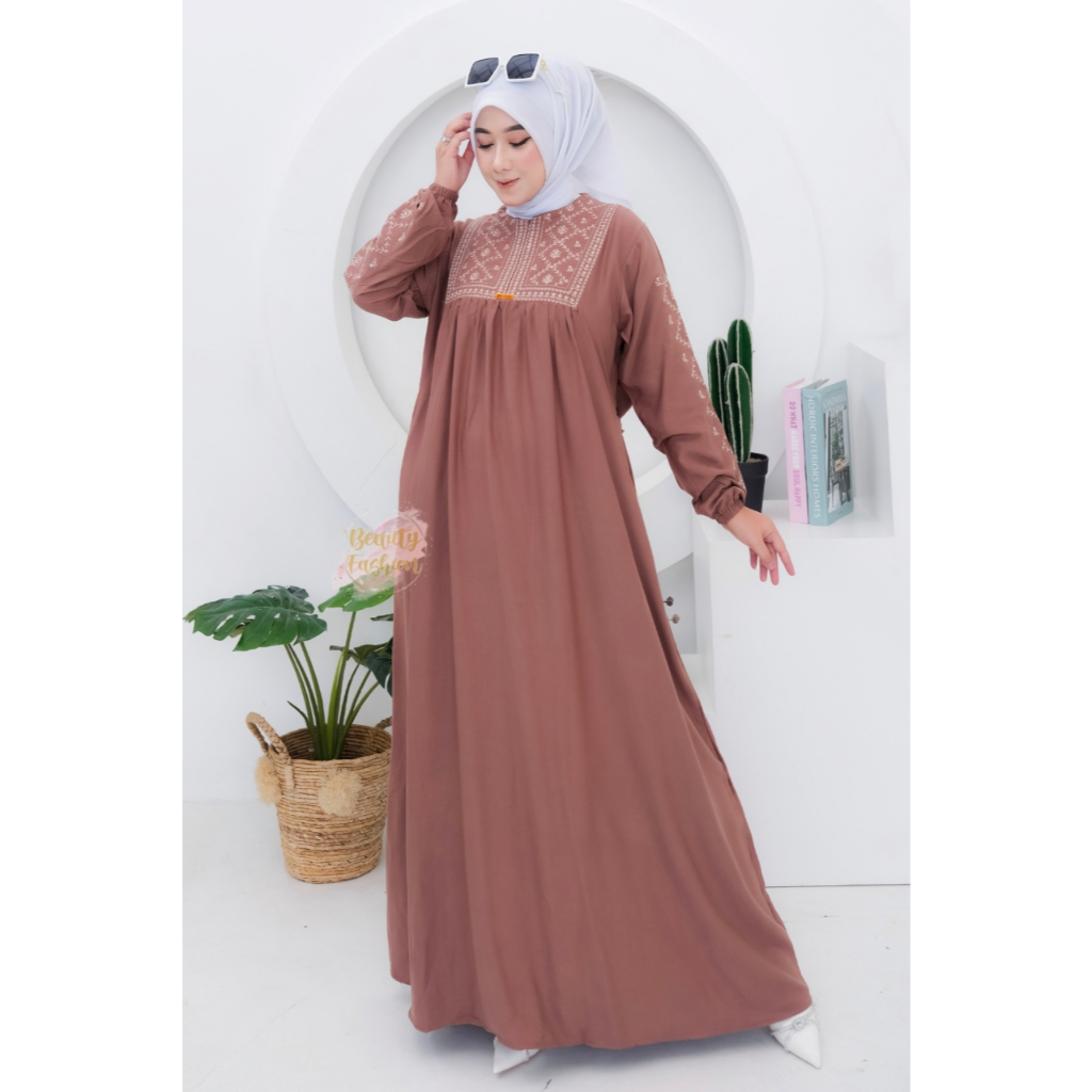 Gamis Rayon Twill Bordir Wanita KAYLA Premium Terbaru Busui Friendly Dress Motif Model Kekinian
