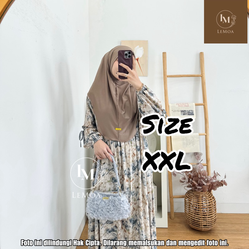 Aurel XXL XXXL Dress Pita Model Lengan Balon Bahan Rayon Diamond Busana Muslim Wanita Motif Jumbo by Lemoa