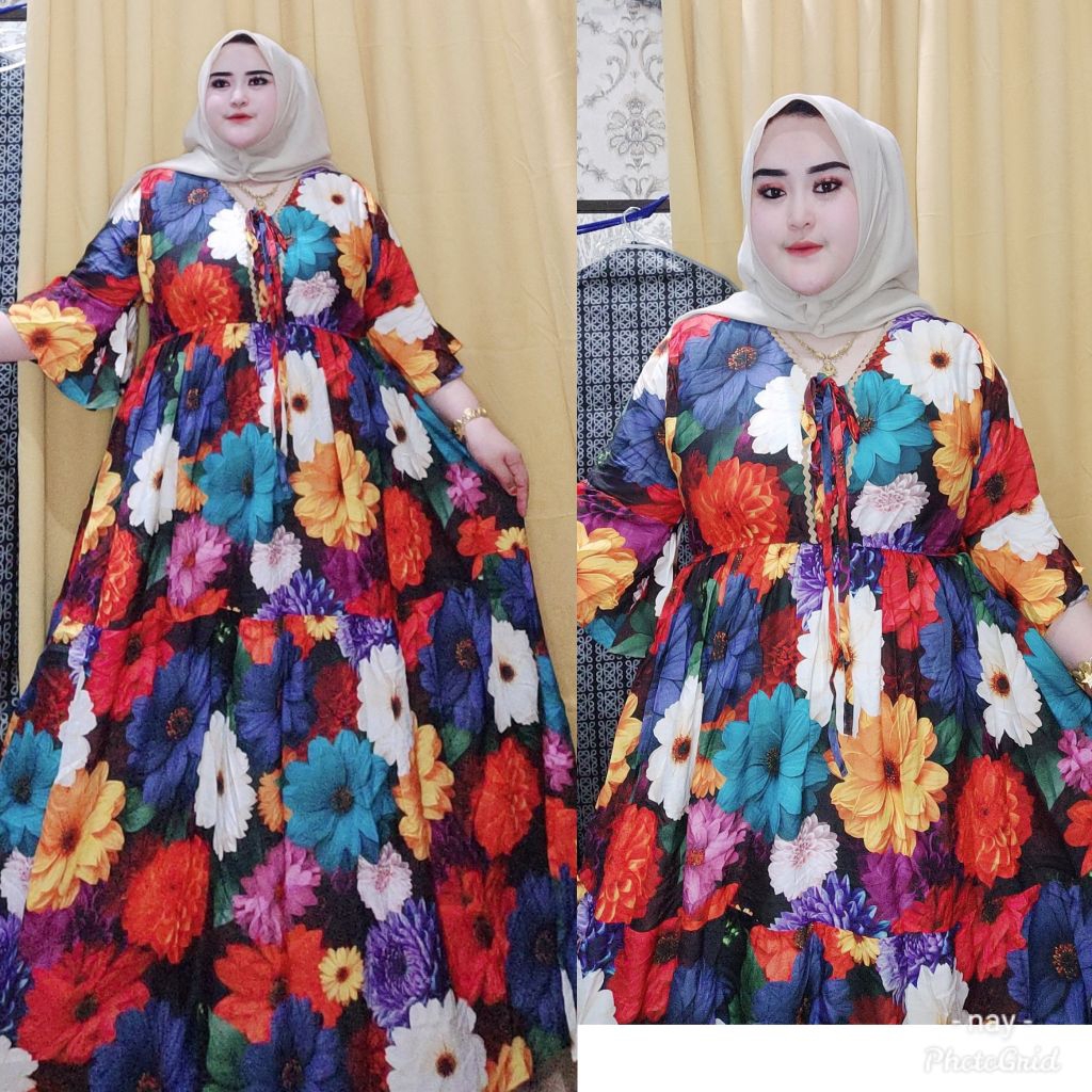 Dress Alya Rayon Premium Busui Karet Pinggang