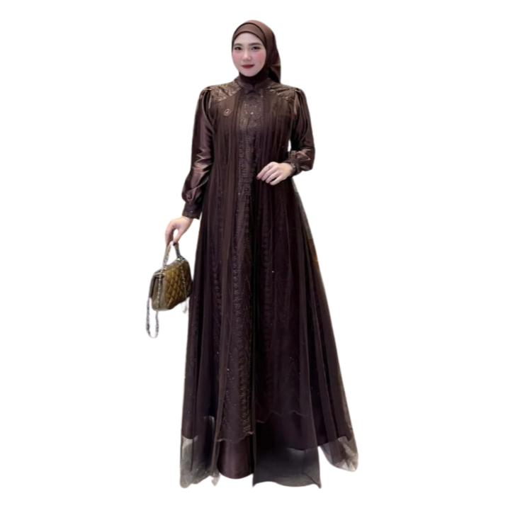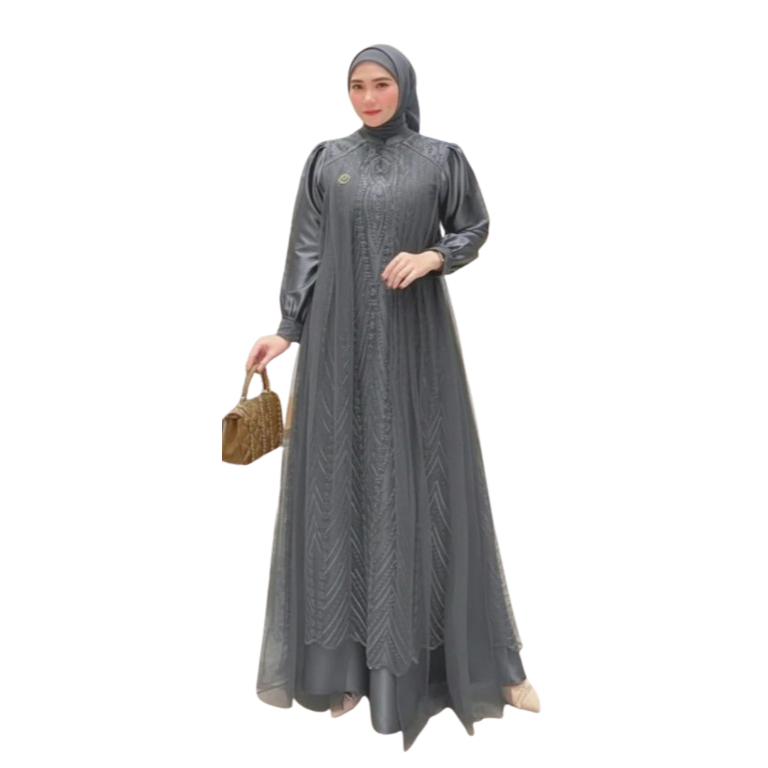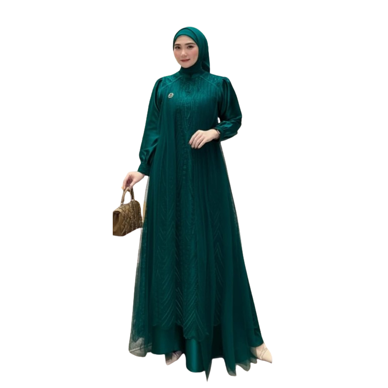 Baju Gamis Brokat Lebaran Mewah Elegan Trend 2025 Leya Dres Silk Premium Busana Muslim Wanita Emeral