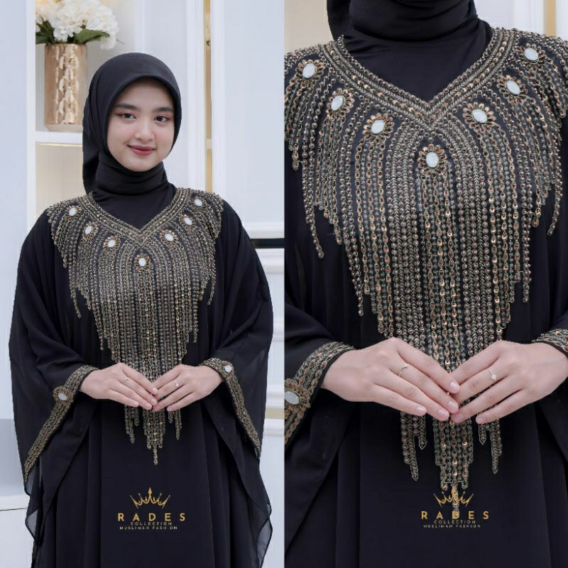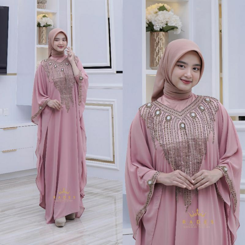 Rades Kaftan Balqis Ceruty Babydoll Mewah Elegan Jumbo Wanita Muslim Pesta Lebaran Kondangan