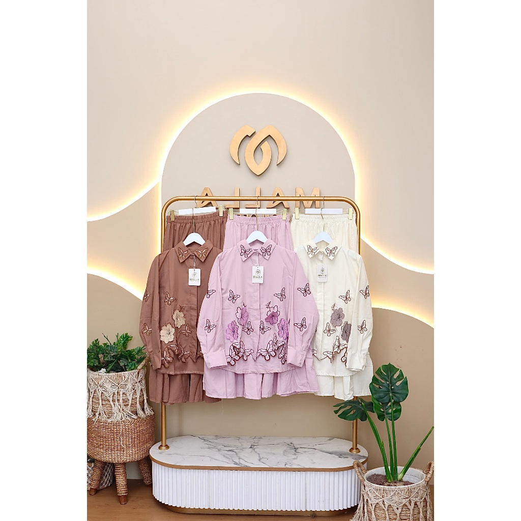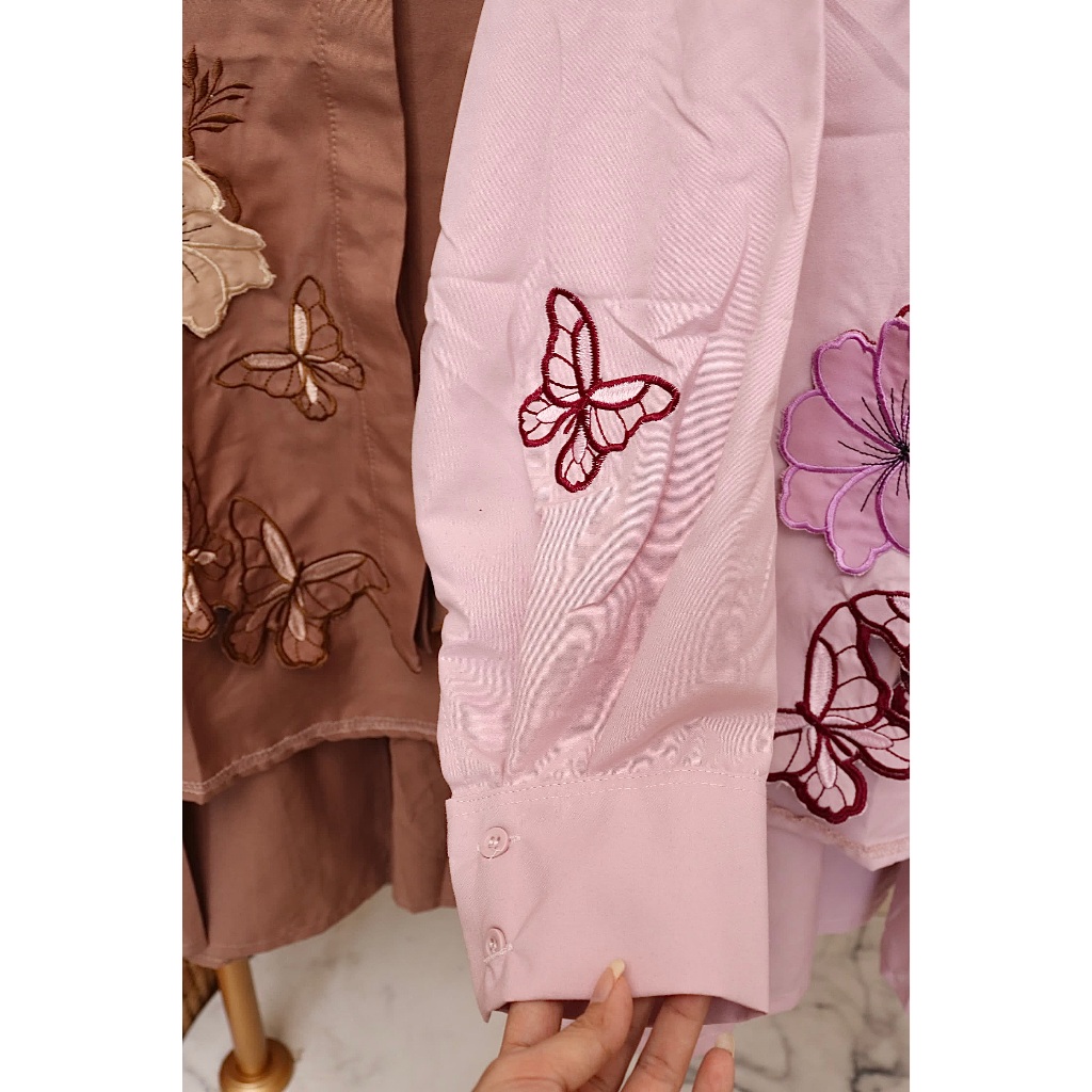 MADAMEMALLA Gweny PO 323 Setelan Rok Umpak Katun Bordir Timbul Kupu Kupu Floral Fashion Muslim