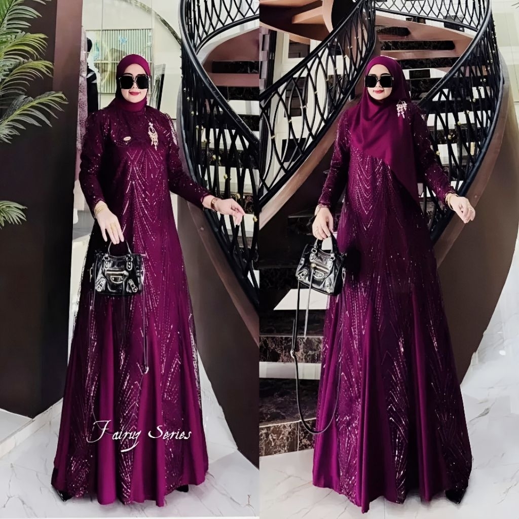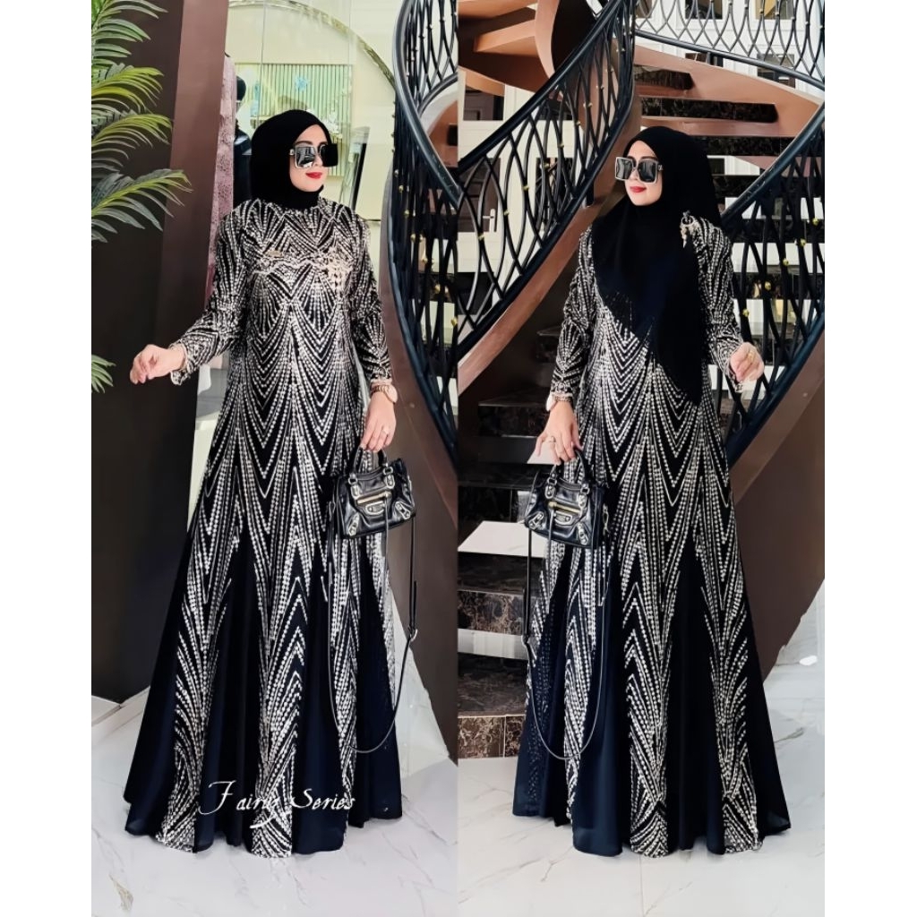Baju Kondangan Wanita Fairuz Series Dress Bahan Ceruty Mix Tile Spangle Gamis Mewah Elegan Terbaru