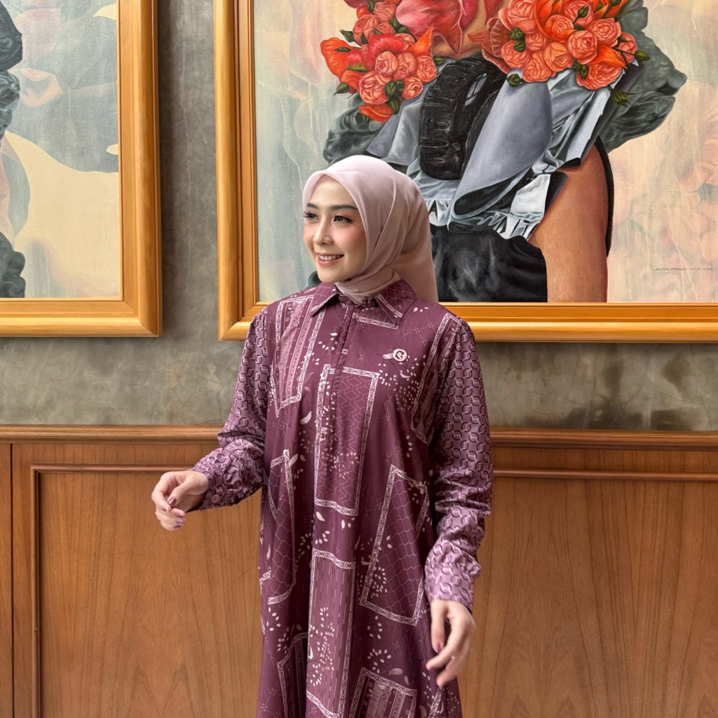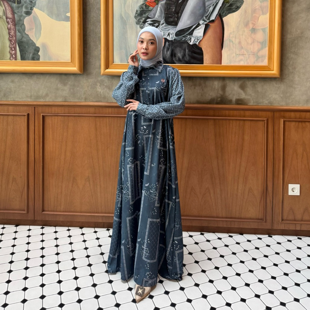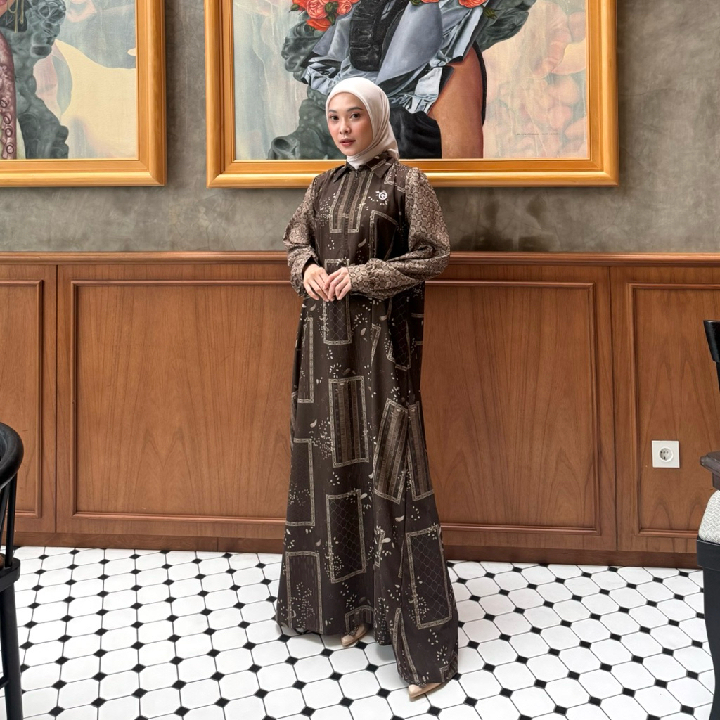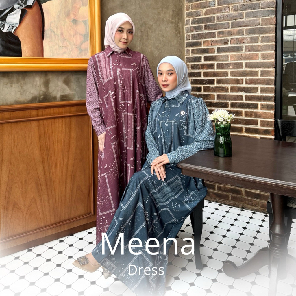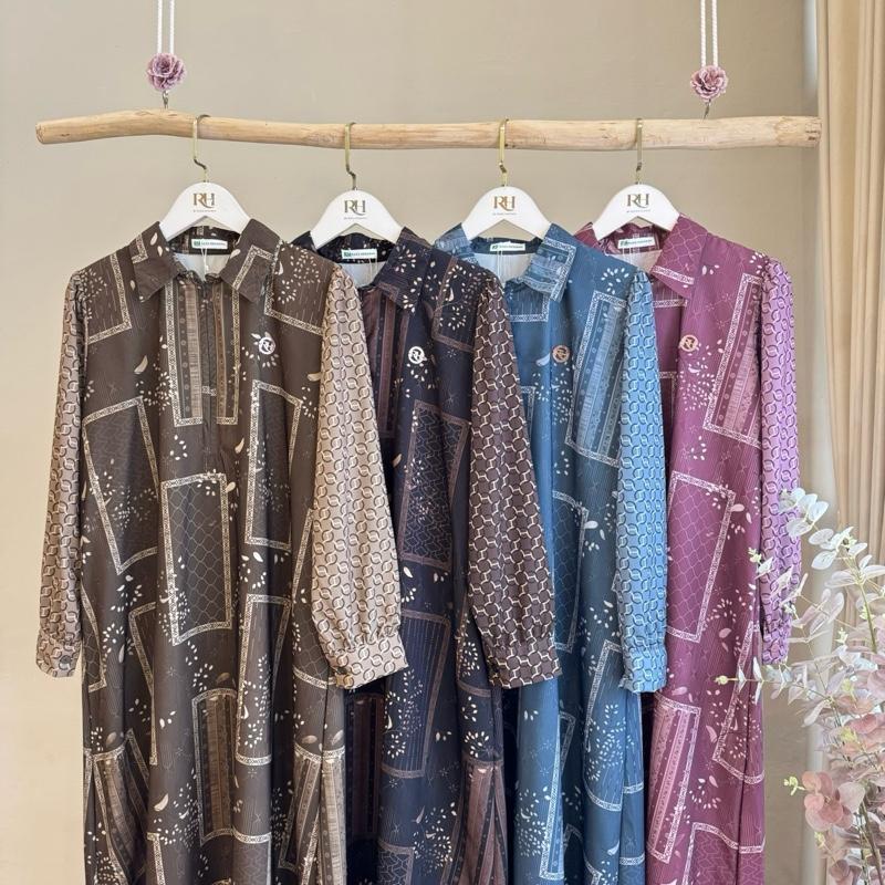 Rh Col Meena Dress Panjang Motif Bahan Malika Silk Gamis Muslim Wanita Elegan
