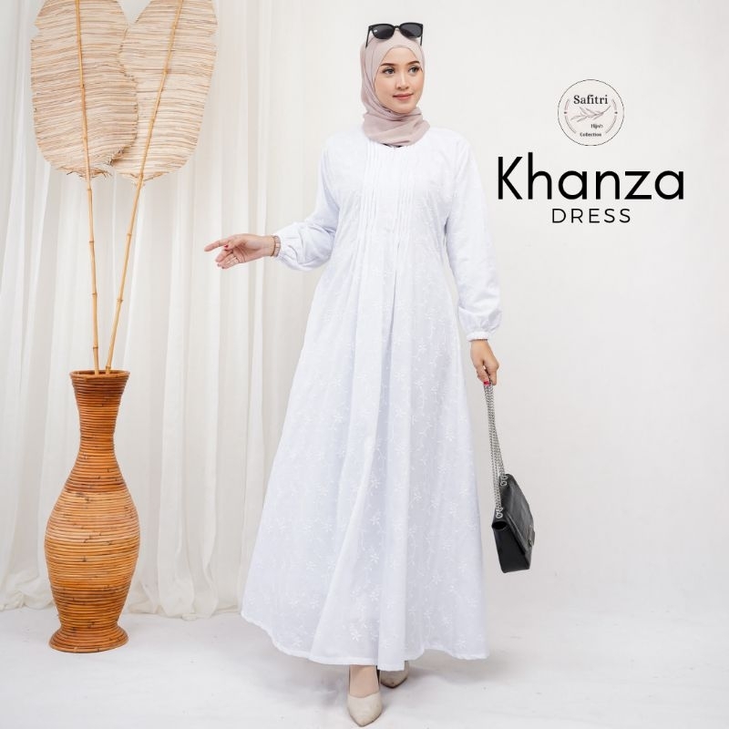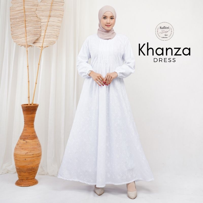 KHANZA DRESS gamis bahan katun adem menyerap keringat busui bordir full furing sebadan by Safitri Fashion