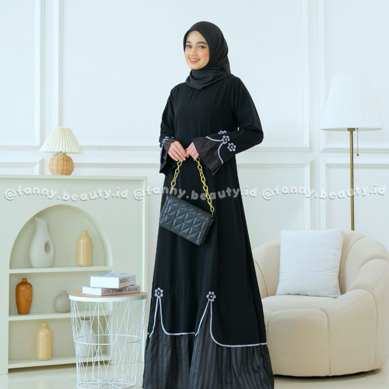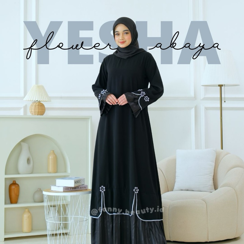 Yesha Flowers Abaya Kombinasi Satin Hitam Polos by fannybeautyid