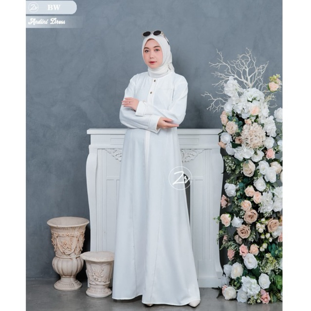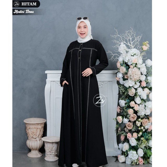 ANDINI Dress Matt Shabrina LD110 Busui Wudhu Friendly Aksen Kancing Tangan Resleting