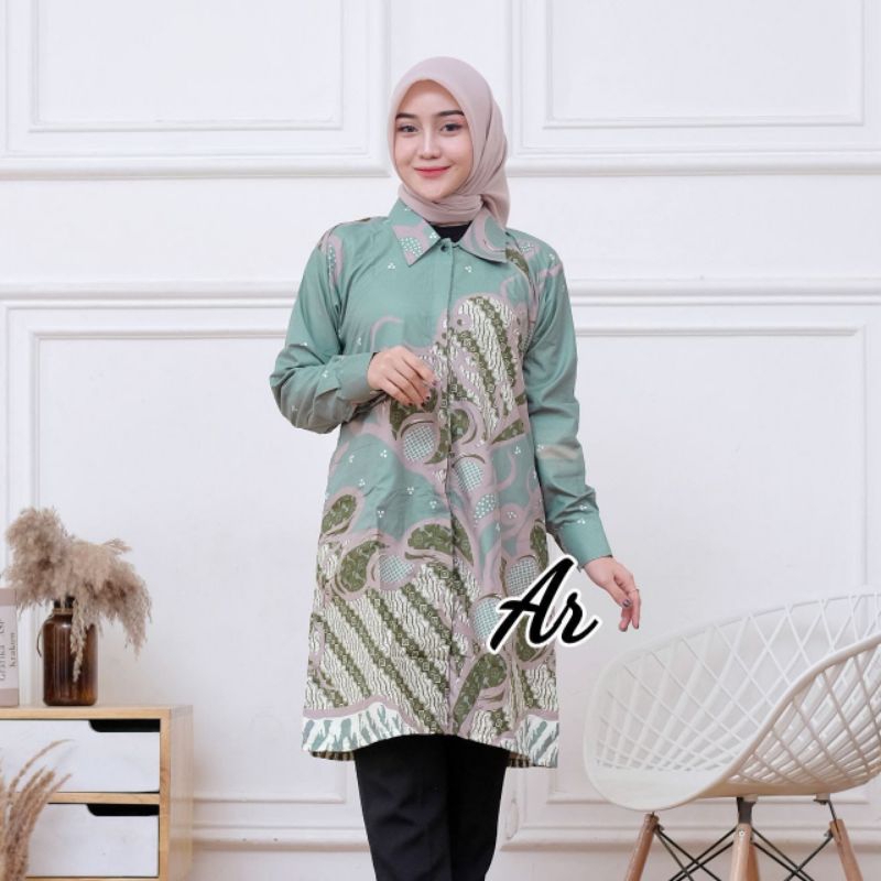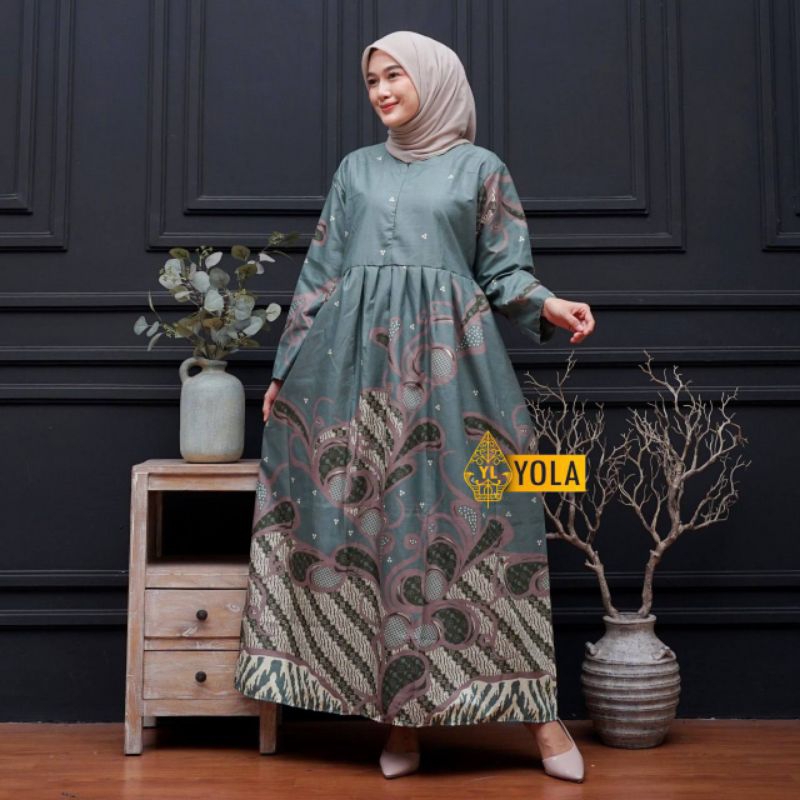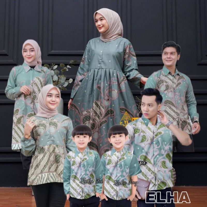 Baju batik couple keluarga / seragam batik size anak sampai dewasa motif mulyo sage