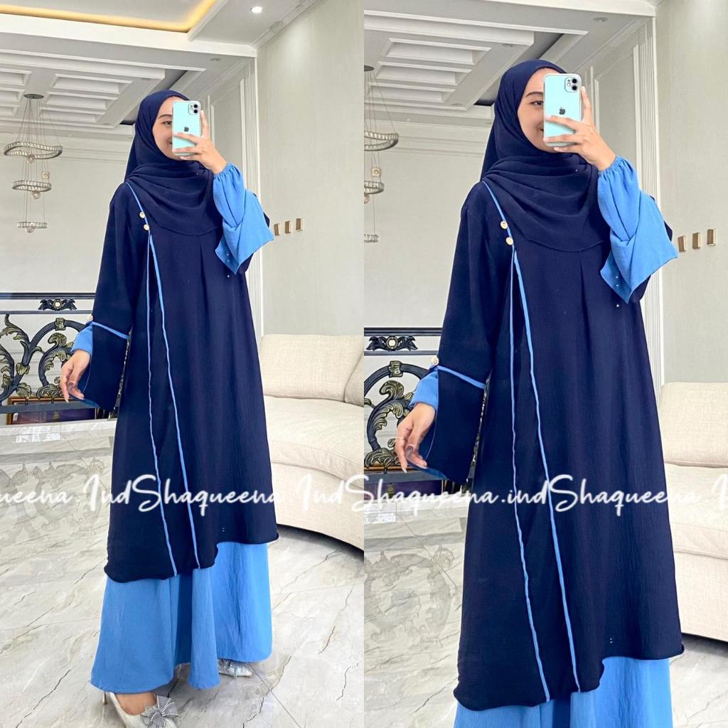 Beliva One Set Rok Cringkel Setelan Rok Syari Kombinasi