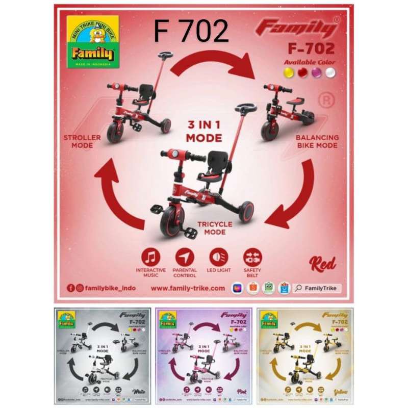 Sepeda roda 3 Family F 702 balance bike f702 f703 f 703 sepeda roda tiga plus musik ban eva