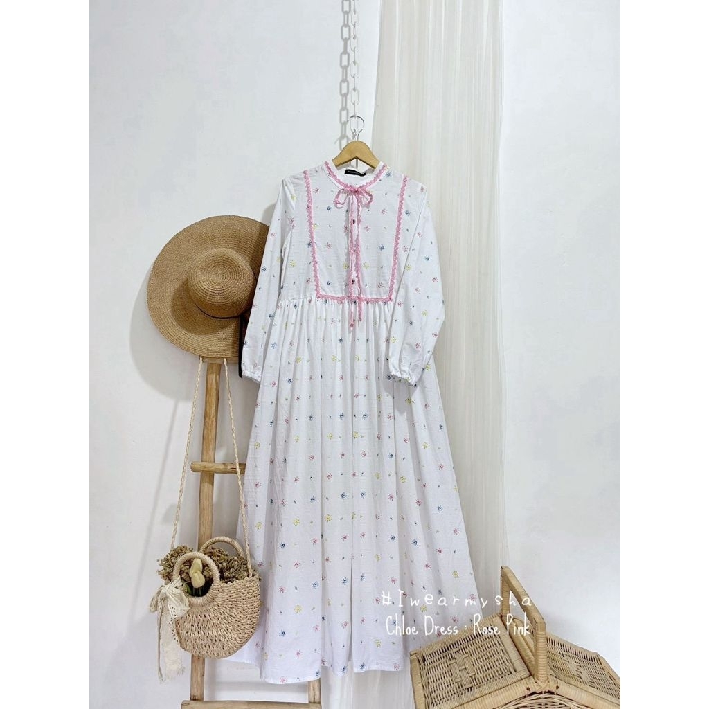 Mysha Iwearmysha CHLOE DRESS Gamis Lebaran Motif Bunga Vintage Korean Style SIZE S M L XL XXL