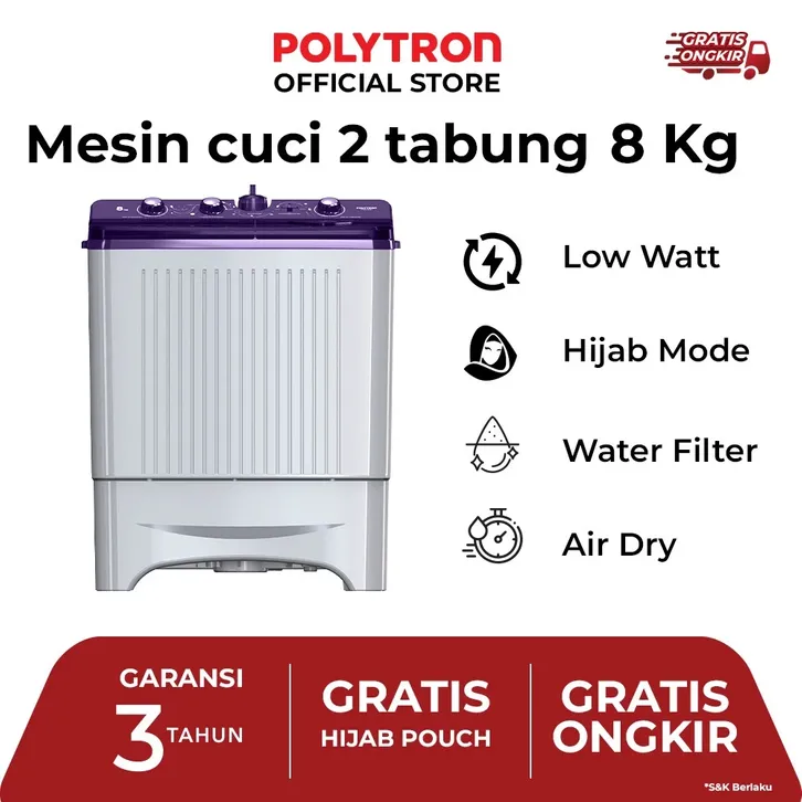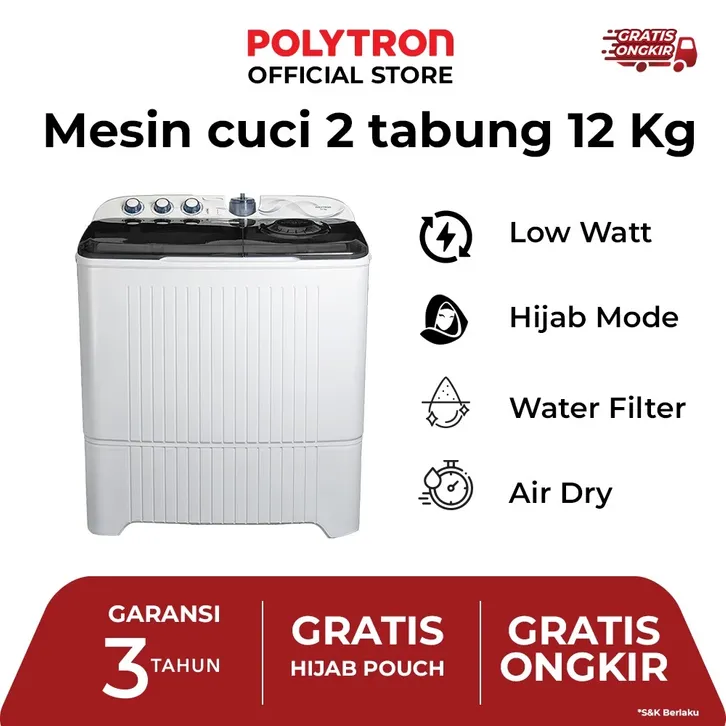 [Star] Mesin Cuci 2 Tabung POLYTRON Primadona Giant 2 tabung 7 Kg PWM 7072N