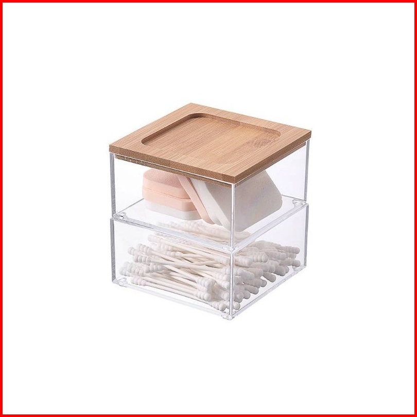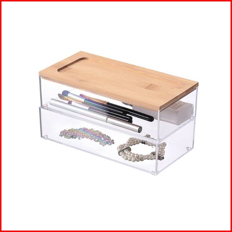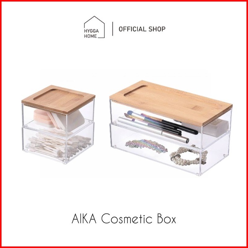 Hygga Home Aika Bok Kosmetik Estetik Transparent Kotak Penyimpanan Serbaguna Cosmetic Box With Bamboo Cover