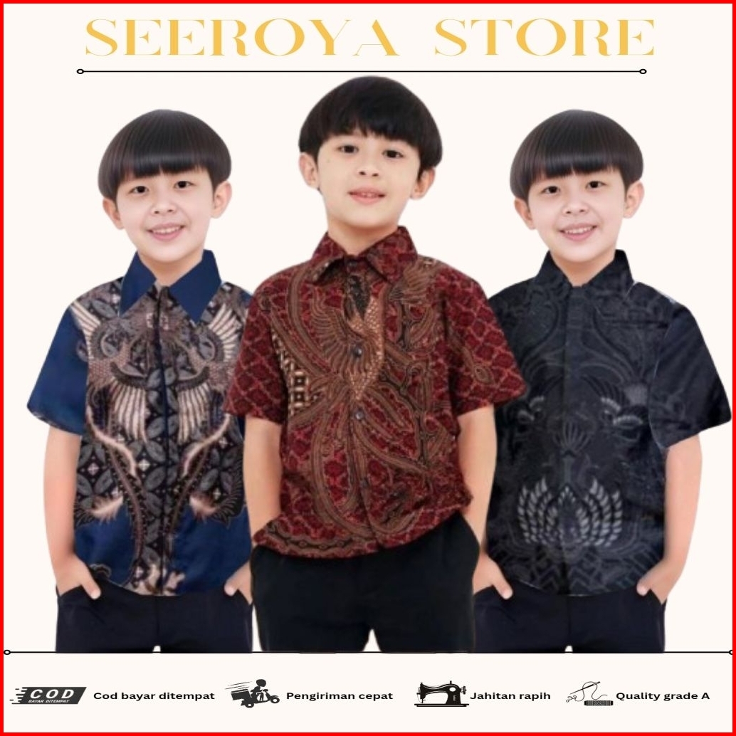 Baju Hem Batik Anak Laki Laki Lengan Pendek Usia 2-14 Tahun -hem Batik Anak Cowok Size M L Xl Xxl