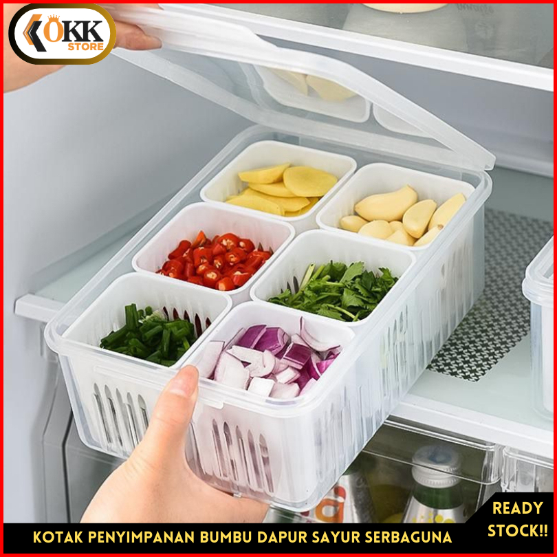 Okk Kotak Penyimpanan Bumbu Dapur Sayur Serbaguna Sekat 9 6 4 Wadah Kulkas Anti Bau