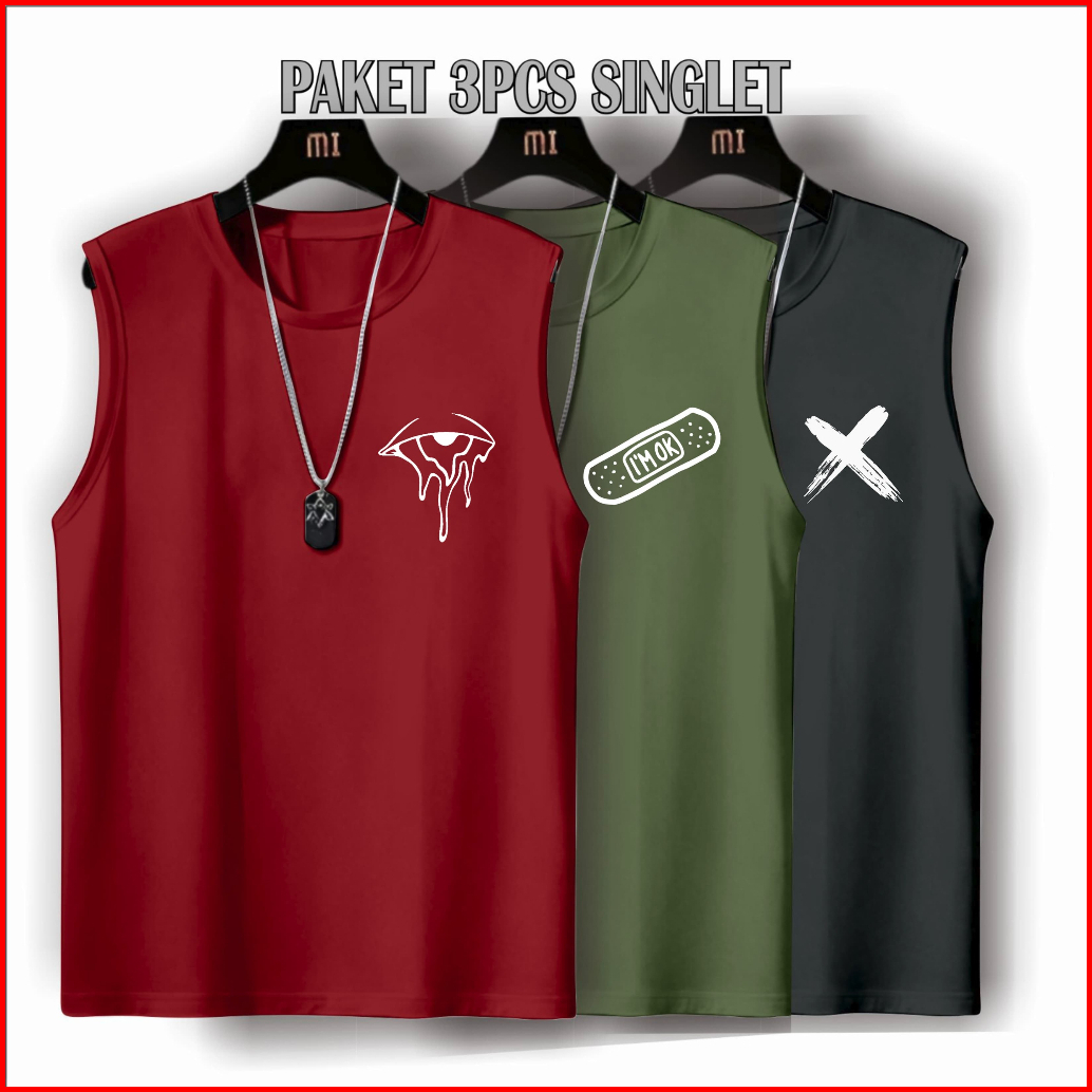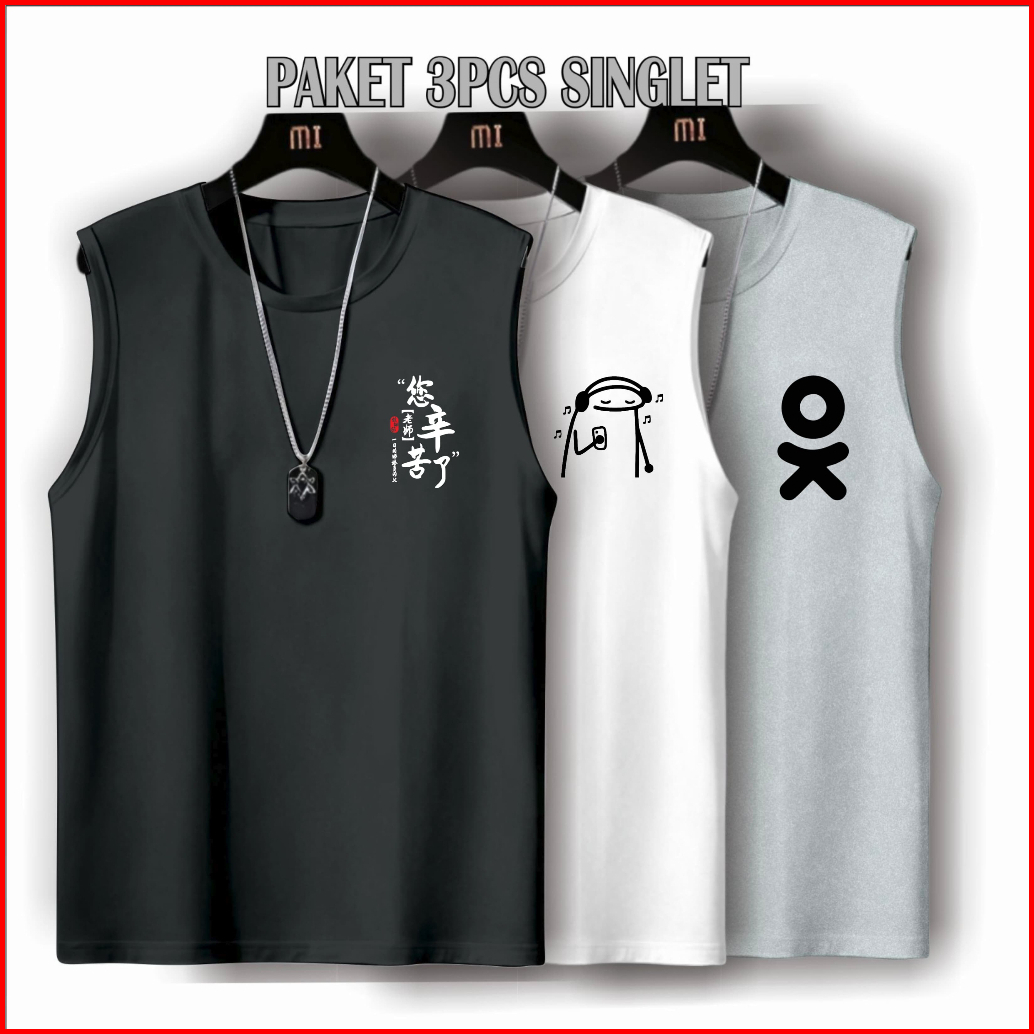 Paket Hemat Kaos Singlet Distro Paketan 3 Pcs 50ribu Singlet Santai Gym Paketan Singlet Premium