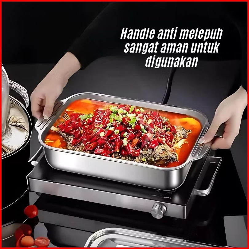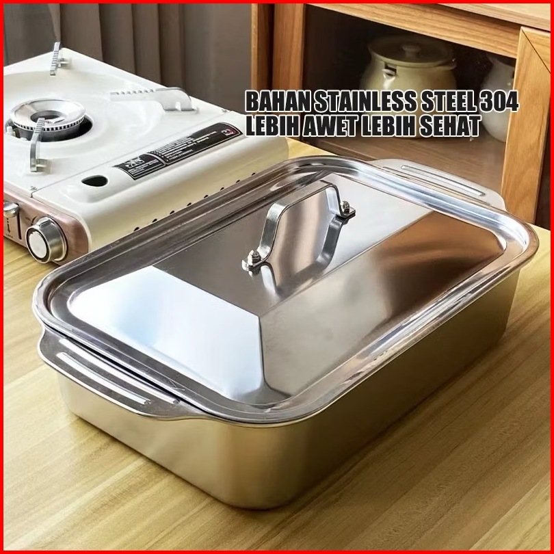 Ceo Panci Jumbo Makan Saji Persegi Stainless Steel 304 Masak Besar Serbaguna Tutup Wadah Prasmanan
