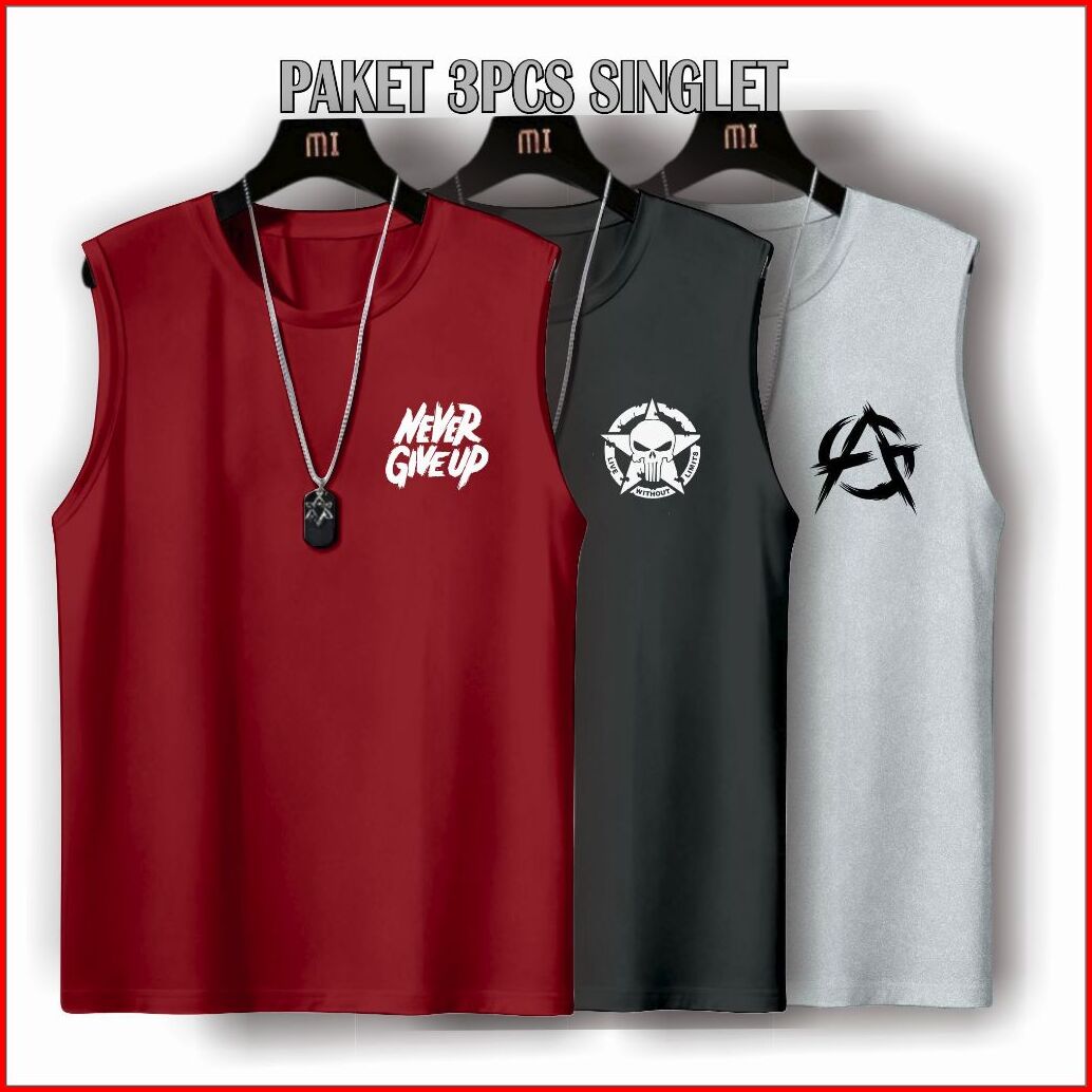 Paket Kaos Singlet Lekbong Pria Dewasa Isi 3pcs Kaos Dalaman Cowok Trendy