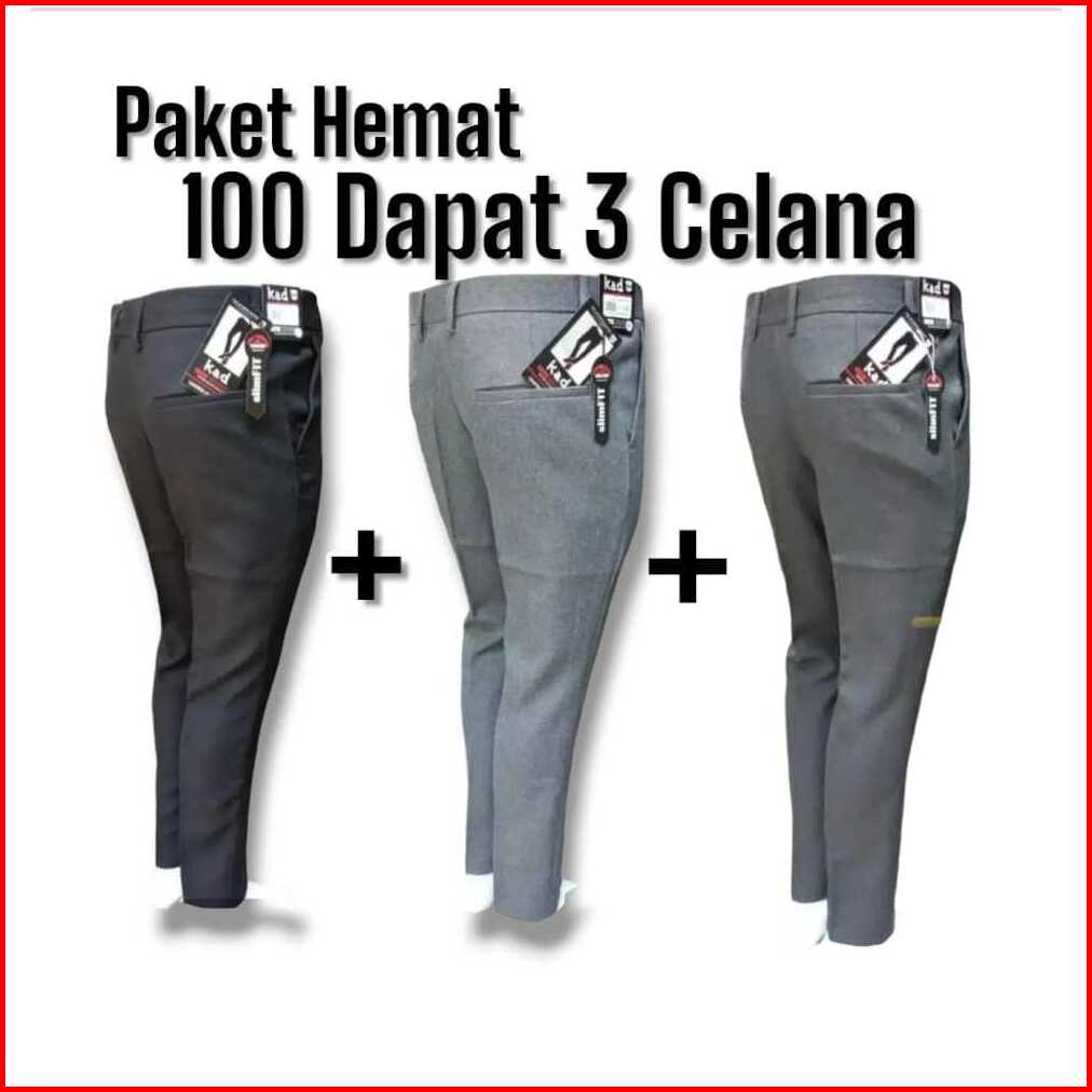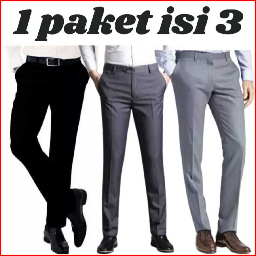 Paket Hemat 100 Dapat 3 Celana Kantor Formal Pria Slimfit Bahan Dasar Kain Semi Woll Berkualitas