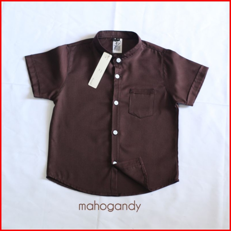 Kemeja Anak Warna Mahogandy Lengan Pendek Baju Anak Laki-laki Warna Coffee