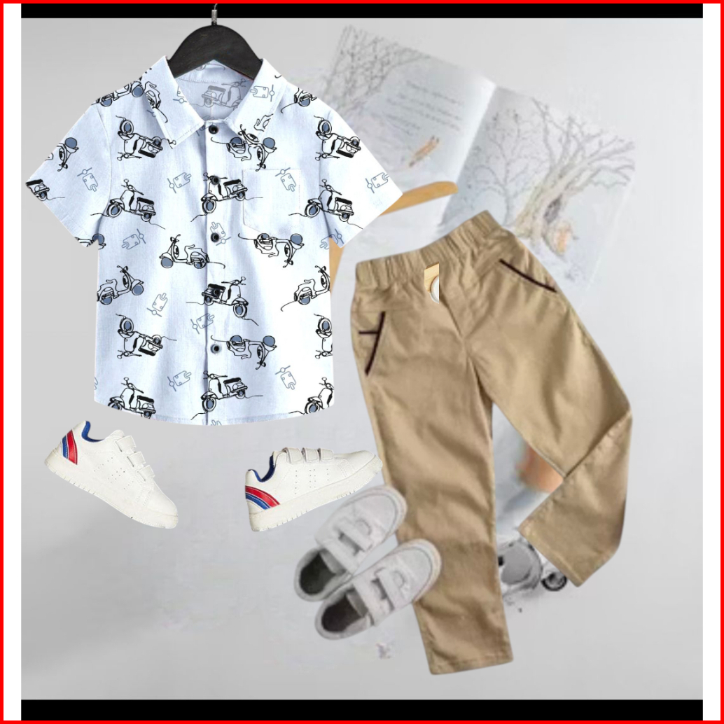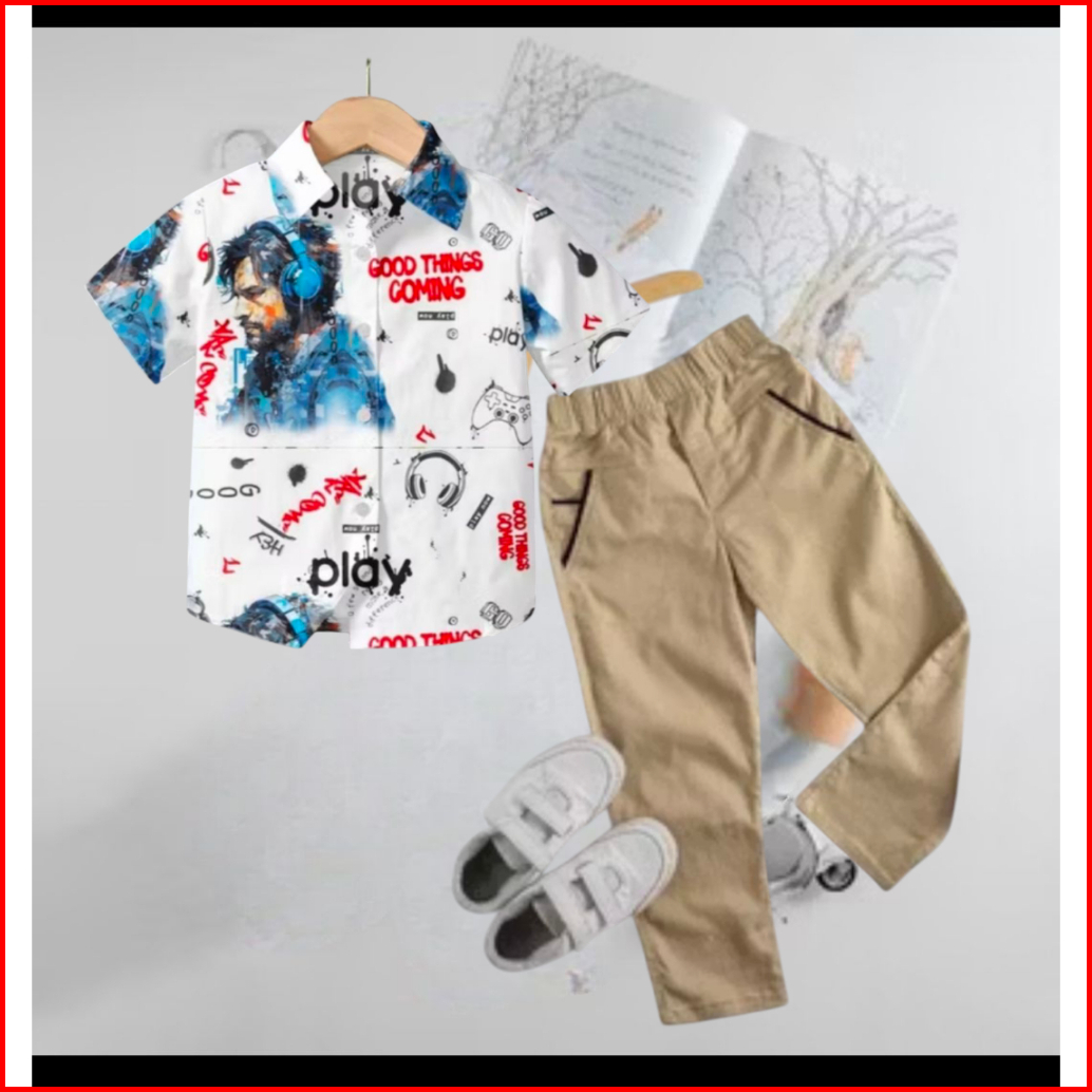 Stelan Kemeja Anak Surfing Celana Chino Anak Laki Laki Usia 2 3 4 5 6 7 8 9 10 11 12 Tahun