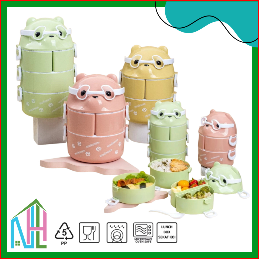 Nhl Indonesia Rantang Panda Karakter Sekat 2 3 Dan 4 Susun Bonus Sendok Makan Plastik Lunch Box Beruang Karakter Tempat