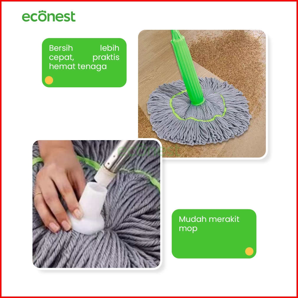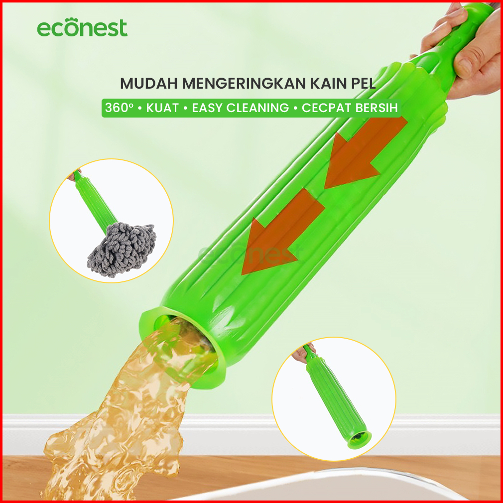 Econest Alat Pel Lantai Twist Mop Kain Pel Microfiber Tarik Peras Otomatis Gagang Stainless Premium