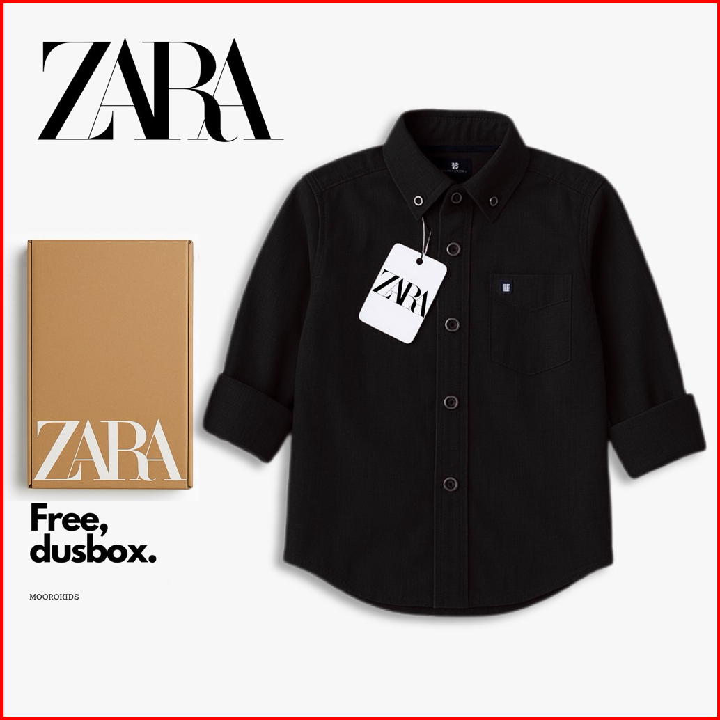 Moorokids - Kemeja Anak Laki-laki Lengan Panjang Premium 1 Tahun Sampai 12 Tahun Warna Hitam