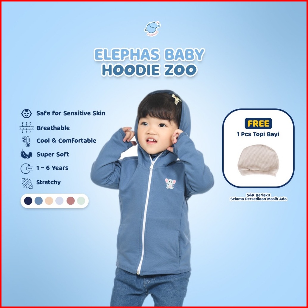 Elephas Baby Hoodie Zoo Series - Jacket Hoodie Anak Premium Bahan Baby Terry Knit Lembut Tidak Panas Ada Ukuran Anak Uni