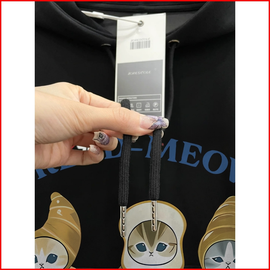 Forteid Hoodie Sweater Wanita Oversize Tiga Pola Cetak Anak Kucing Roti Kartun Lucu Korean Style Baju Wanita Kekinian Ba