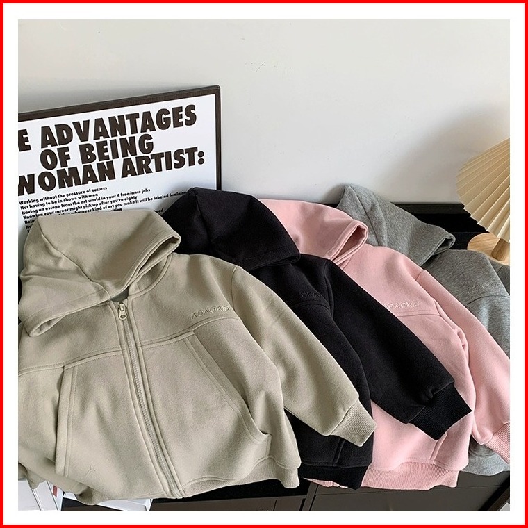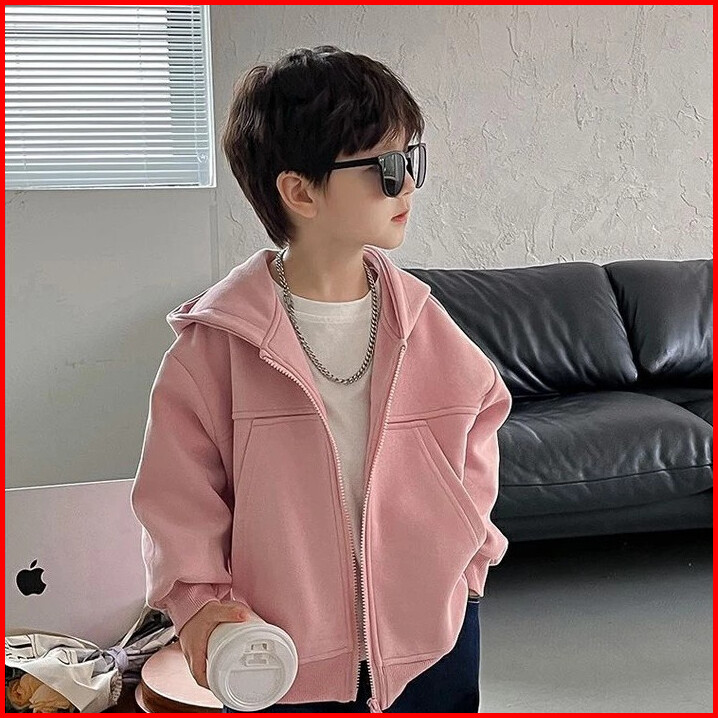 Jaket Hoodie Zipper Saku Tinggi Polos Anak Usia 3-10 Tahun Laki-laki Perempuan Warna Pastel Bahan Tebal Premium