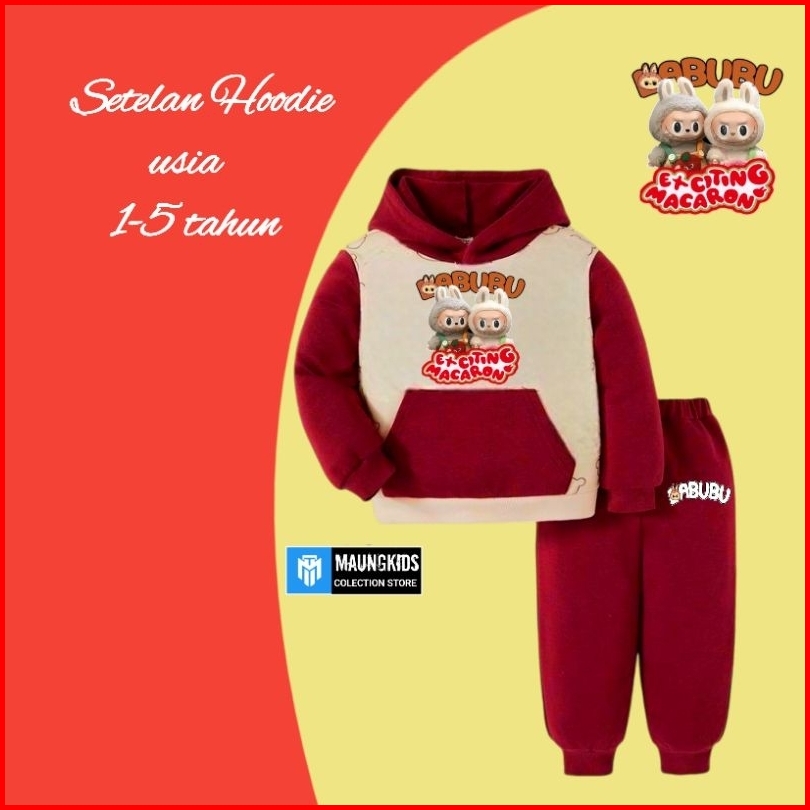 Setelan Hoodie Labubu 1-5 Tahun Sweater Jaket Hoodie Setelan Anak