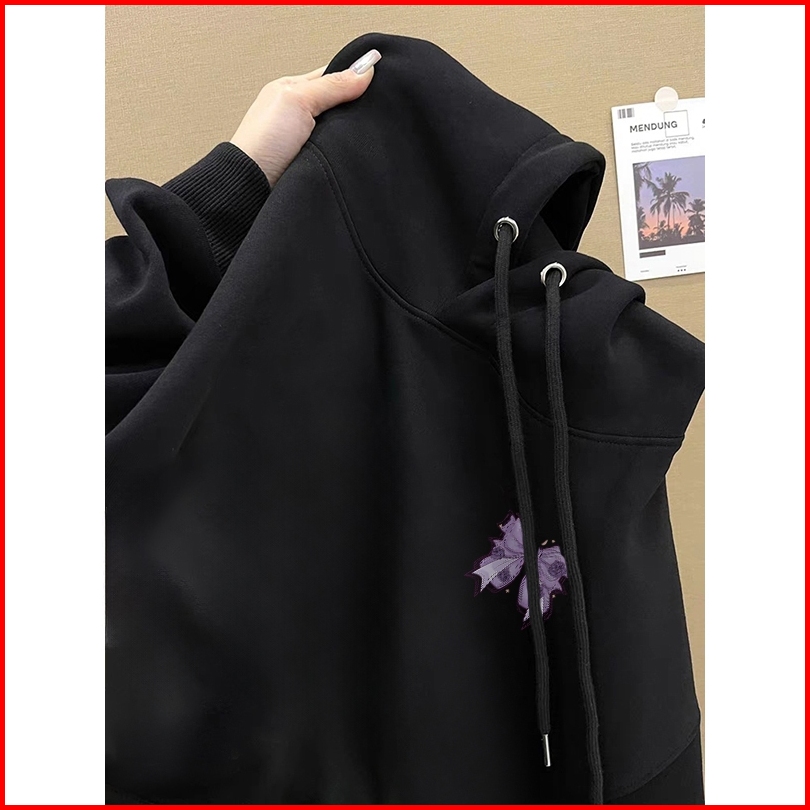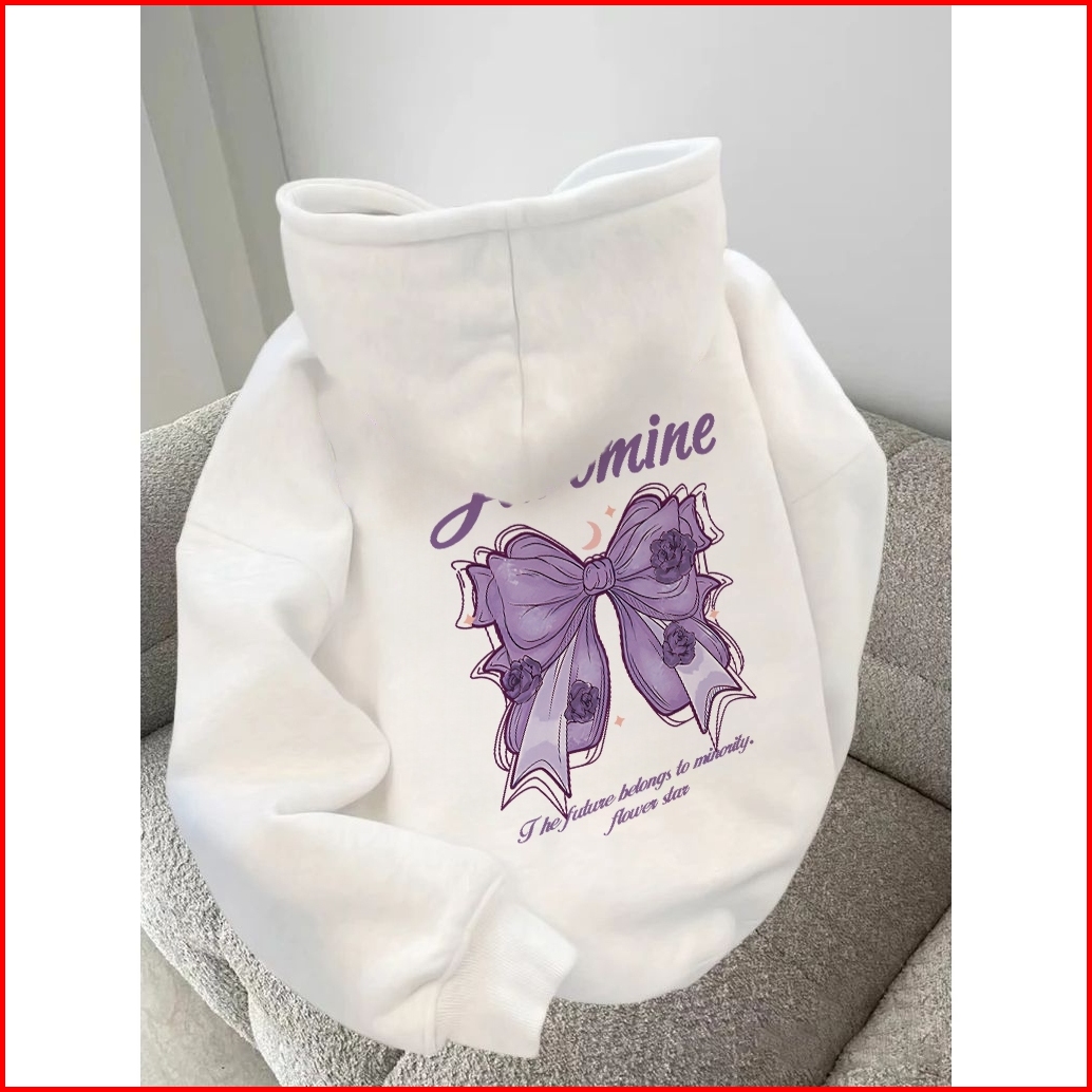 Forteid Hoodie Sweater Wanita Oversize Cetakan Pola Pita Ungu Korean Style Baju Wanita Kekinian Baju Wanita Switer Wanit