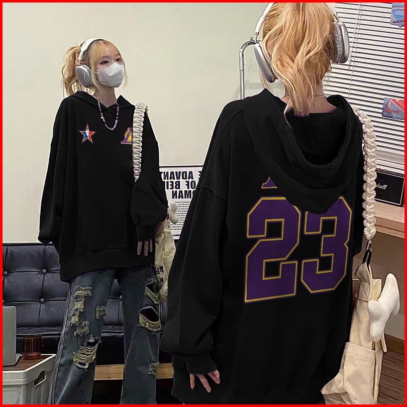 Forteid Oversize Hoodie Wanita Korean Style Oversize Hoodie Sweater Pencetakan No. 23 Amerika Baju Wanita Kekinian Baju