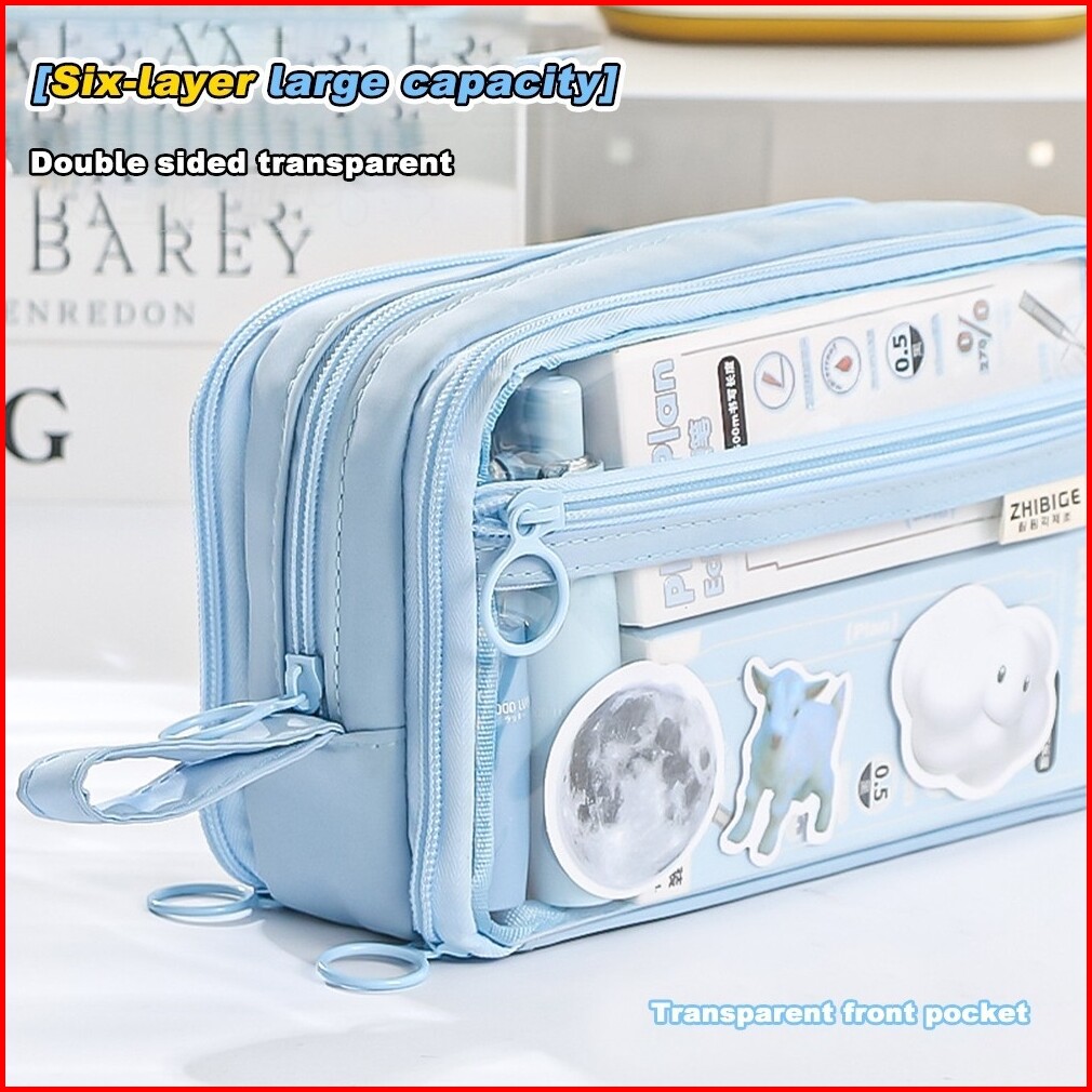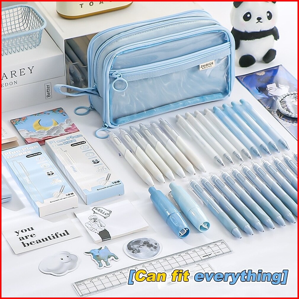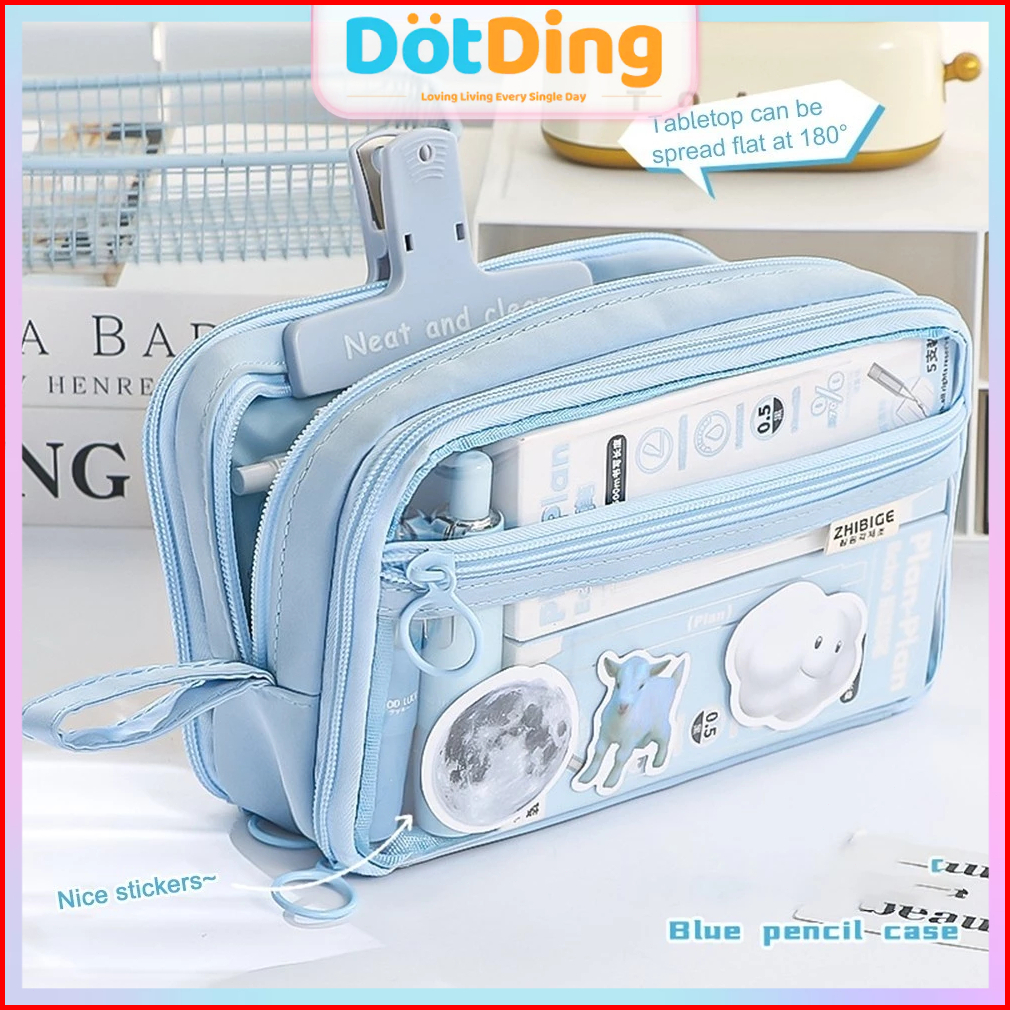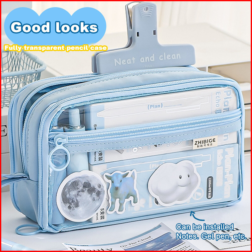 Dotding Kotak Pensil Transparan Aesthetic Korean Style - Desain Unik 3 Lapis Zipper Kapasitas 40 Pensil Transparent Aest