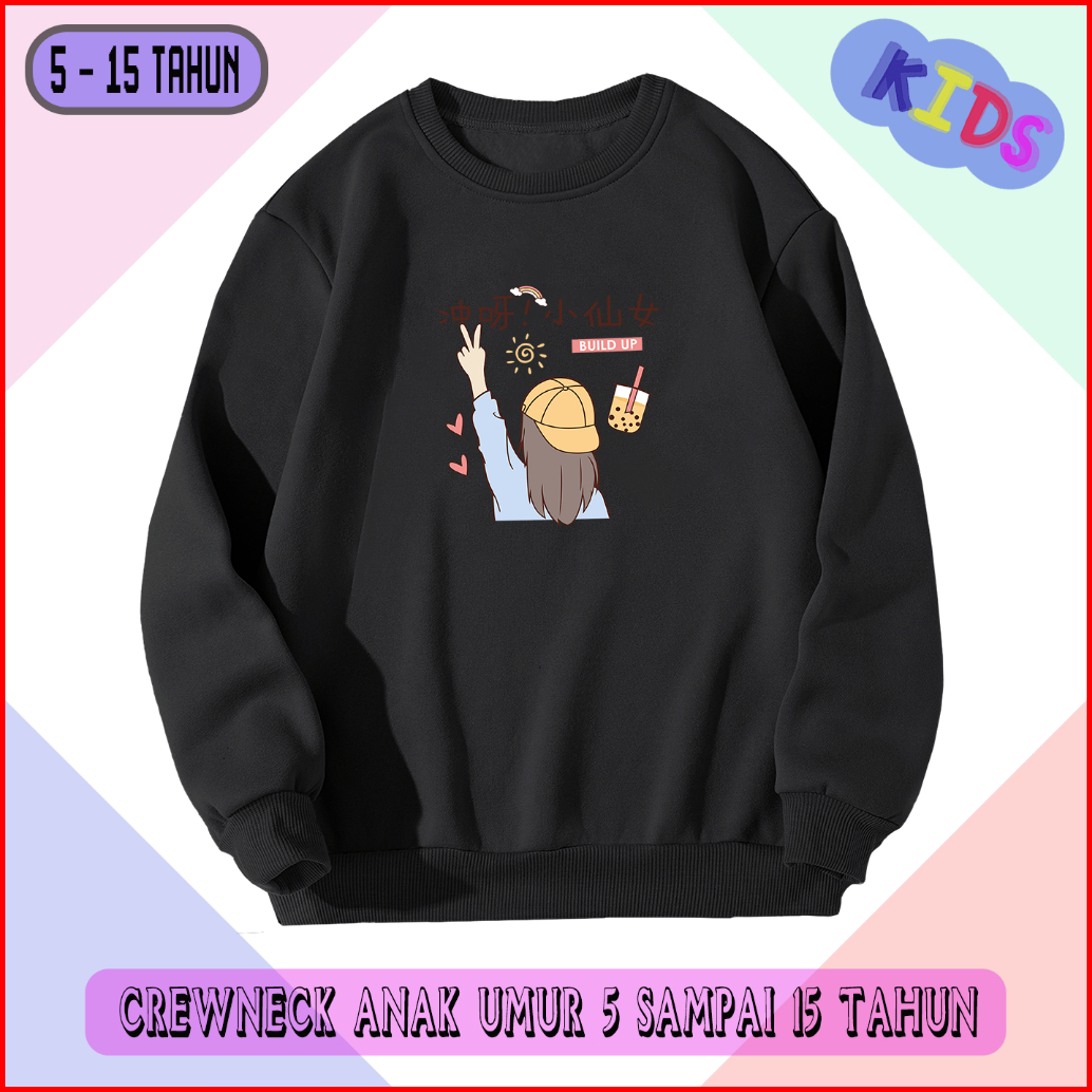 Dijaketan - Crewneck Anak Perempuan Umur 5 - 15 Tahun Sweater Anak Buildup Sweeter Oblong Switer Crew Neck Murah Hitam C
