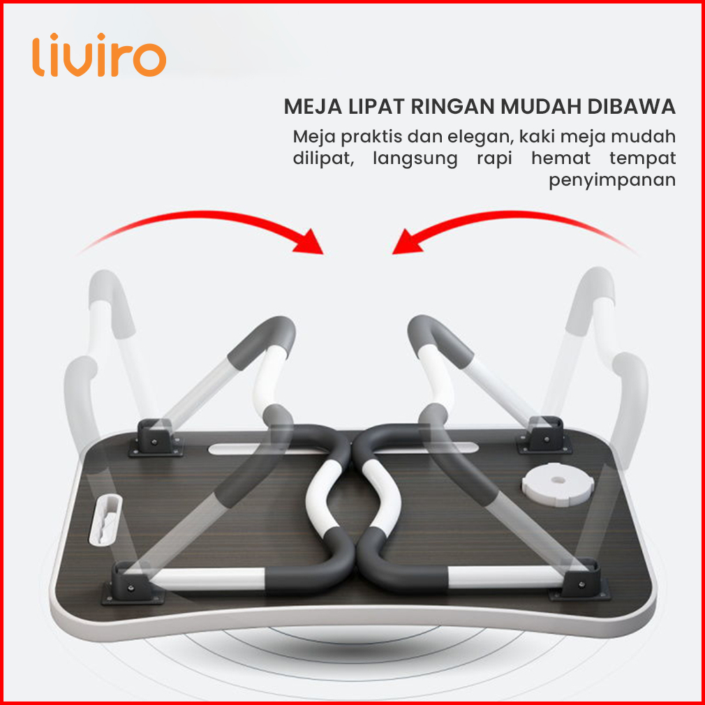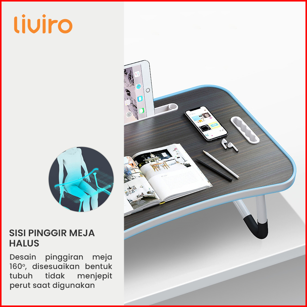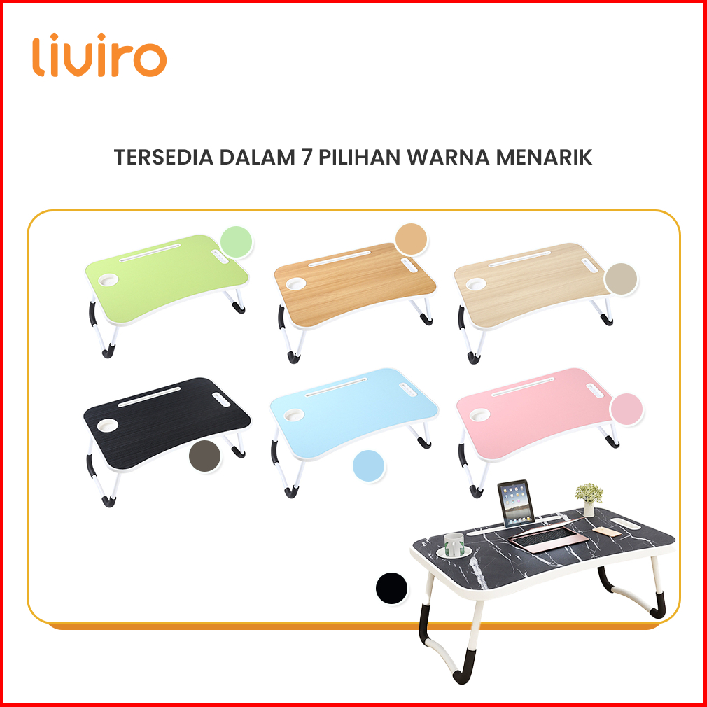 Liviro Meja Lipat Belajar Laptop Jumbo Ukuran 60x40 Cm Motif Polos Anti Slip Bahan Kayu Kokoh