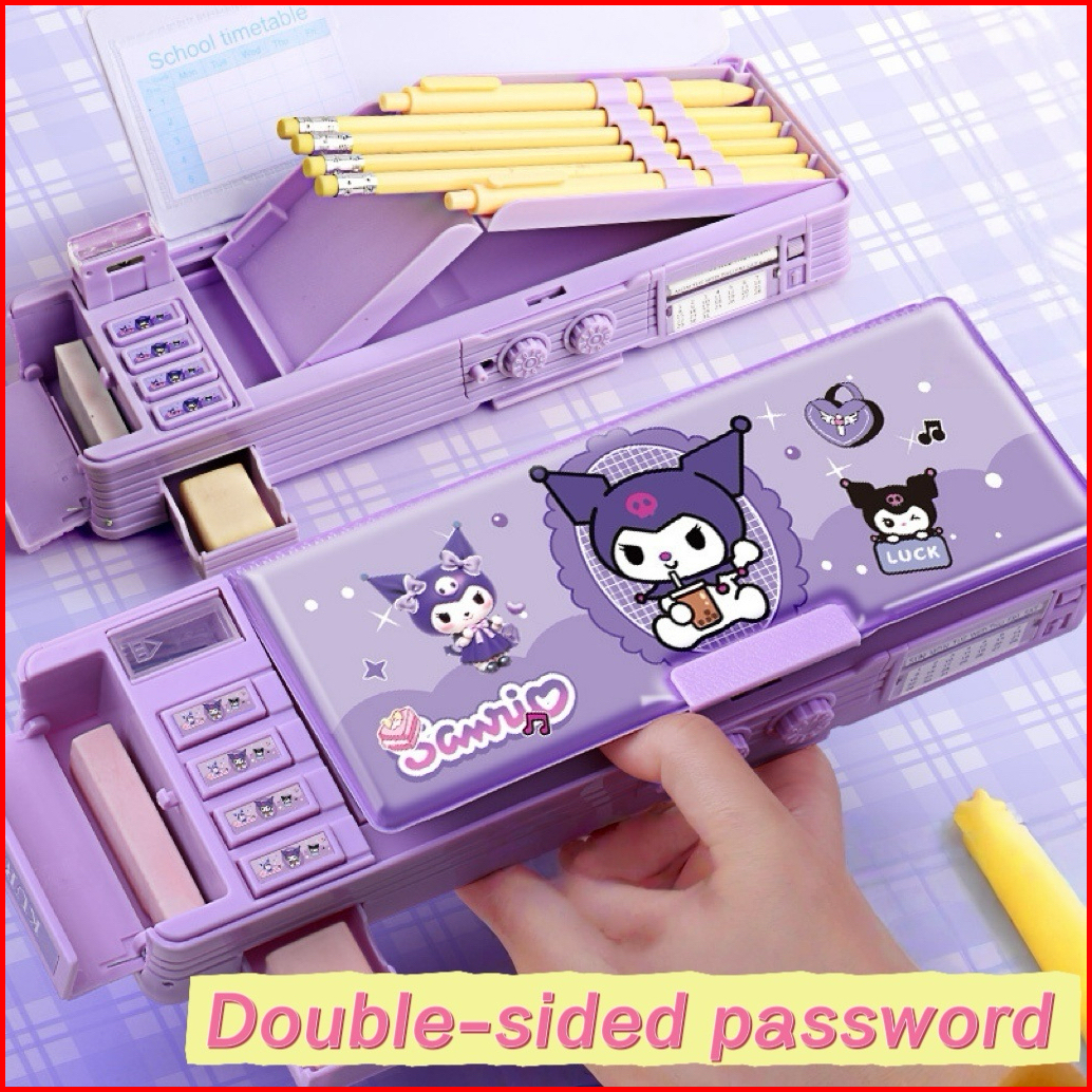 Kotak Alat Tulis Multifungsi Kuromi Untuk Anak Perempuan 2025 Kotak Pensil Otomatis Baru Kata Sandi Kompartemen Mesin Ko