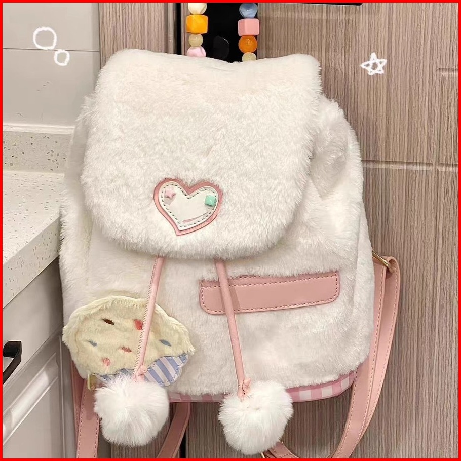 Pinkbubbly.ins Tas Bahu Tas Ransel Baru Yang Lucu Fashion Korea Bag Wanita Kasual Modis Ransel Berbulu Ransel Modis Gadi