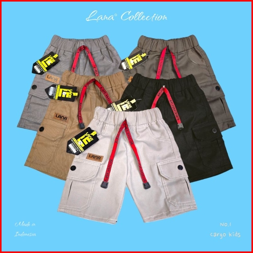 Lana Collection Paket Hemat 3 Pcs Celana Cargo Pendek Anak Laki Laki Usia 1-12 Tahun Kain Drill Premium