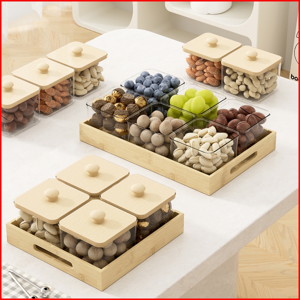 Greenland Wadah Makanan Tutup Kayu Nampan Kayu Toples Snack Makanan Ringan Kue Kering Buah Hsb835