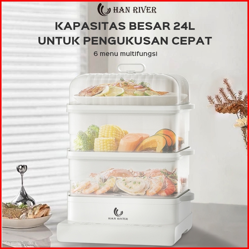 Han River Panci Listrik 4 Tingkat Panci Kukus 24l Kukus Dan Masak Seafood Siomay Mie Sayur