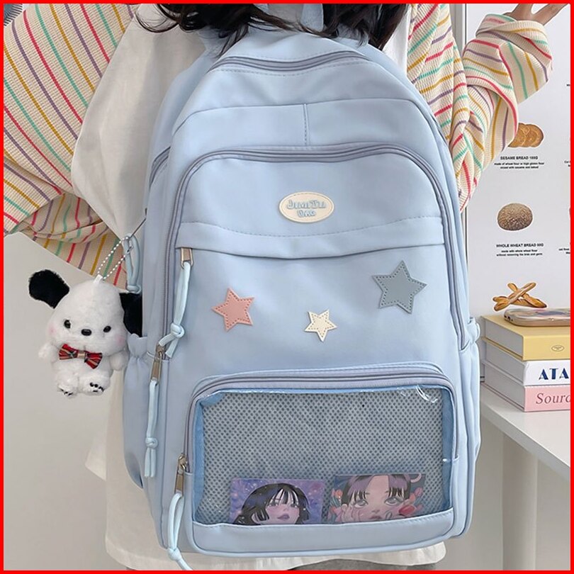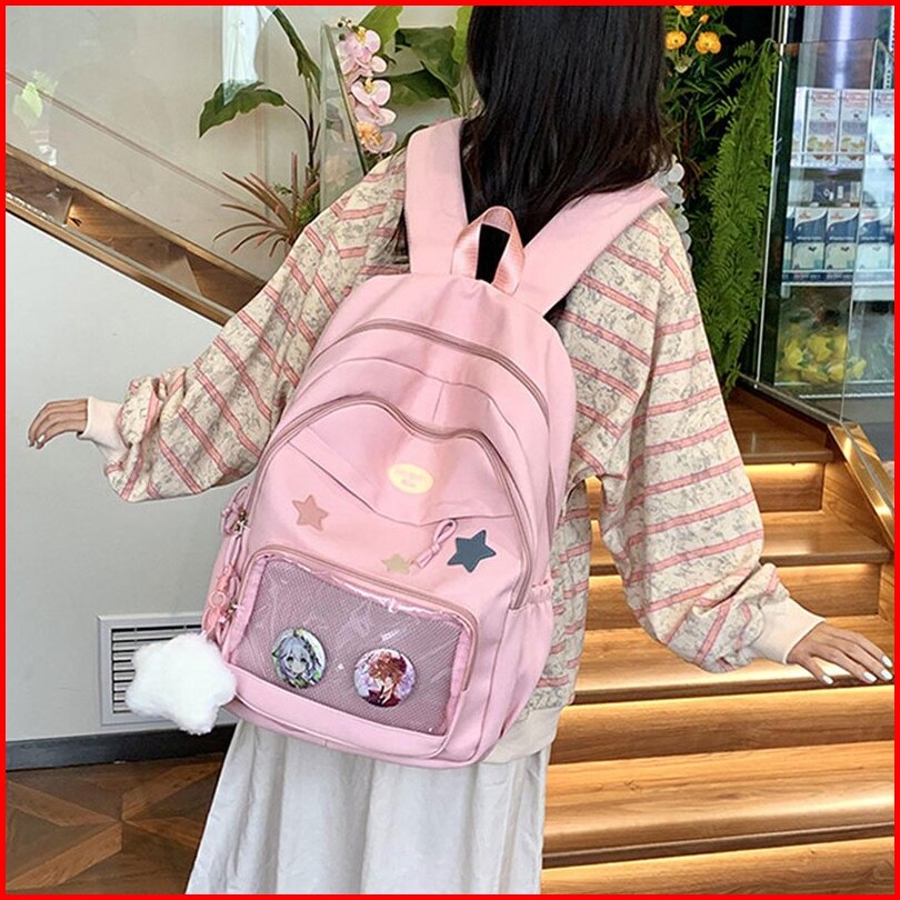 Pinkbubbly.tas Sekolah Lucu Siswa Tas Bahu Kampus Transparan Wanita Kapasitas Besar Korea Import Fashion Kuliah Tas Rans