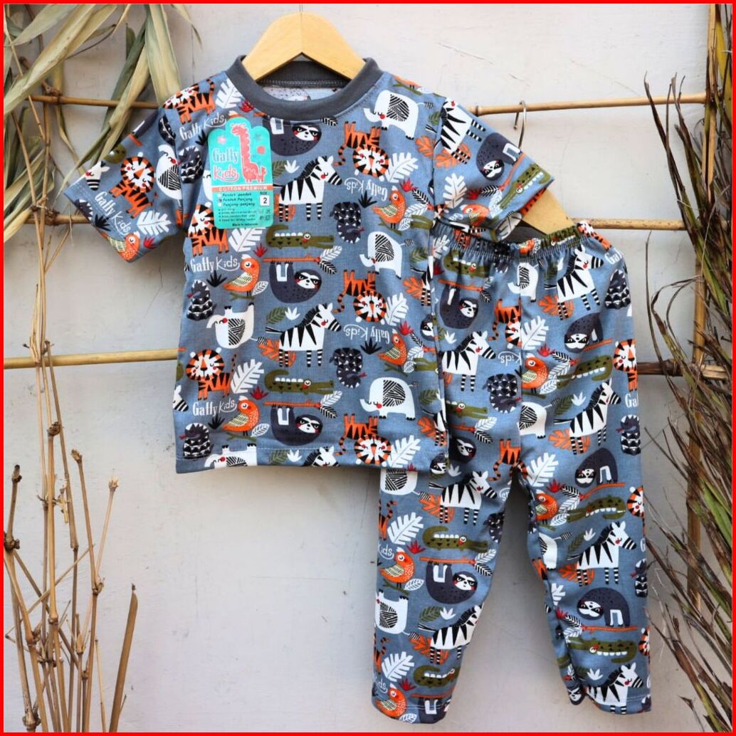 Setelan Baju Anak Printing Gaffy Kids Tersedia Untuk Usia 1 Sampai 8 Tahun Lengan Pendek Motip Hewan