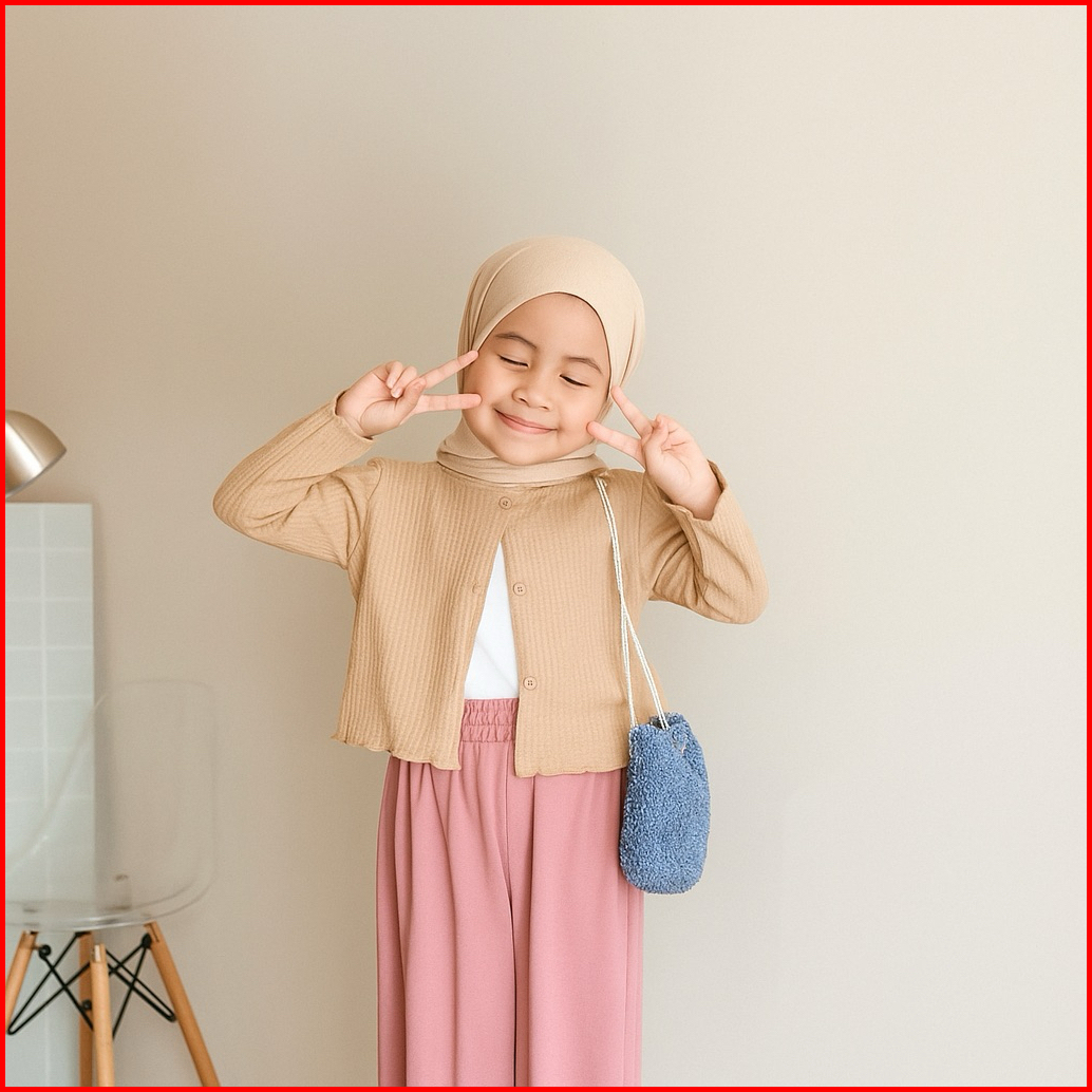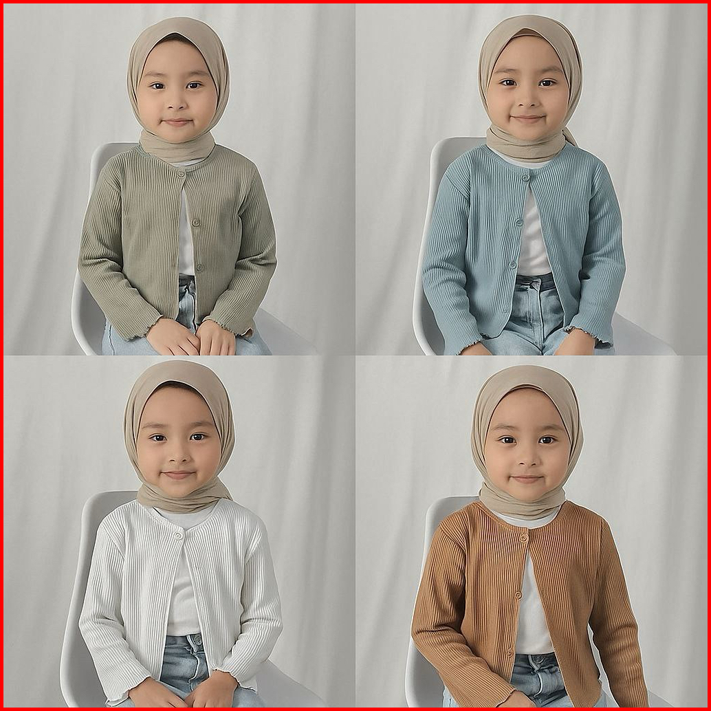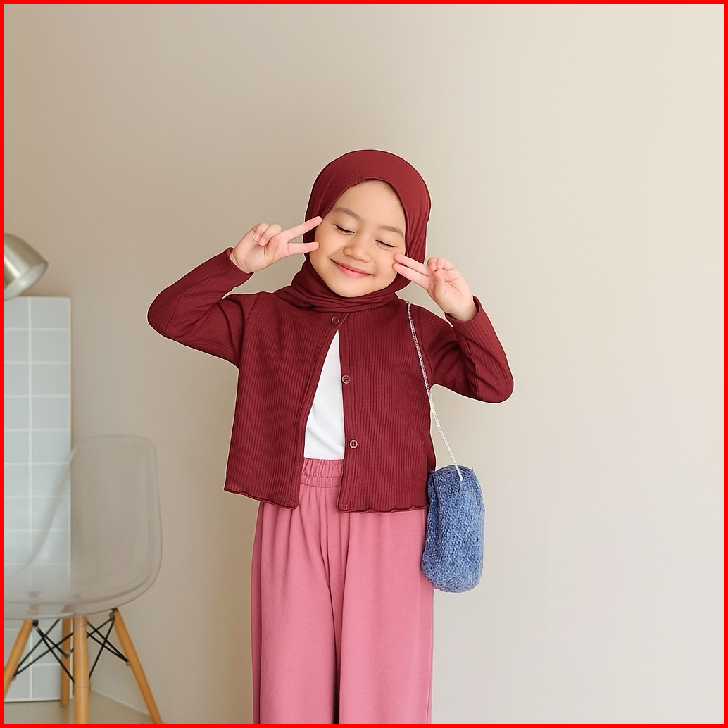 Cardigan Anak Perempuan Usia 2 Sampai 12 Tahun Bahan Rajut Waffle Knit