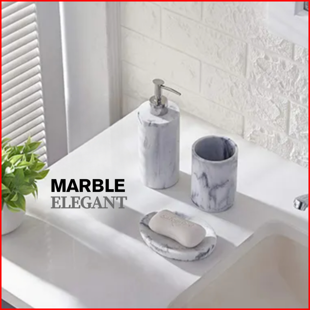 Tempat Sabun Set 3in1pernak Pernik Kamar Mandi Dispenser Sabun Bath Set Botol Sabun Gelas Marmer