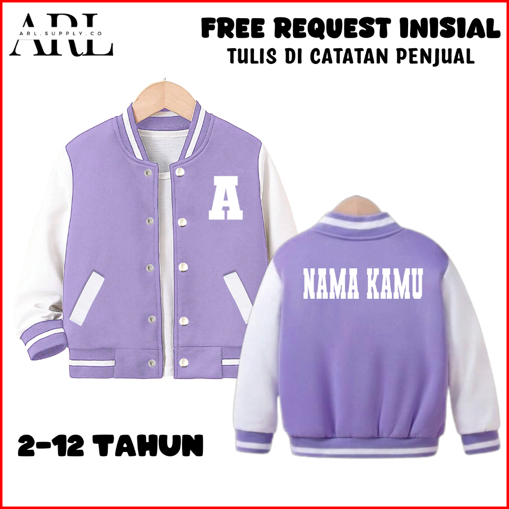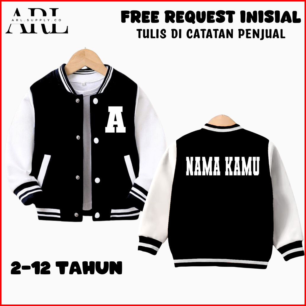 Arlsupply.co - Jaket Varsity Baseball Anak Custom Nama Untuk Usia 2-12 Tahun
