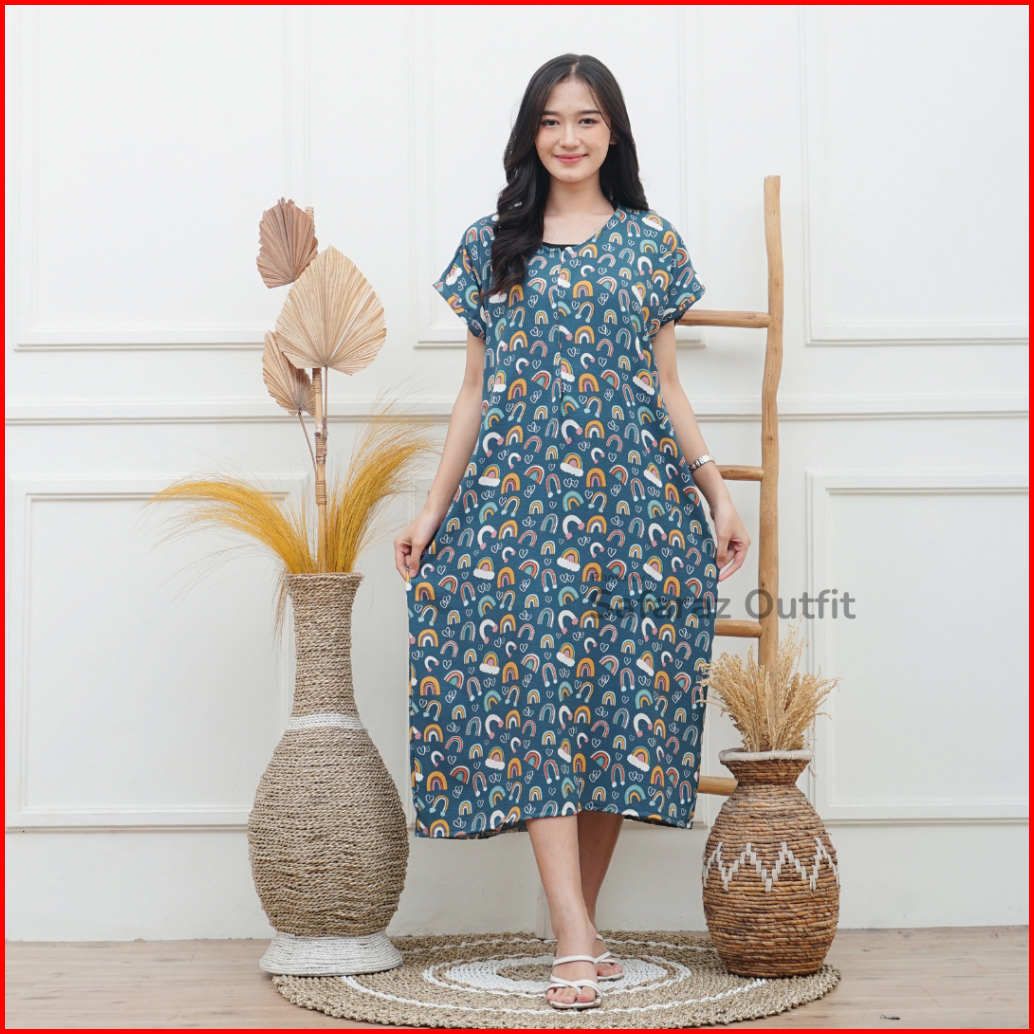 Daster Long Dress Motif Bunga Kelinci Simple Manis Nyaman